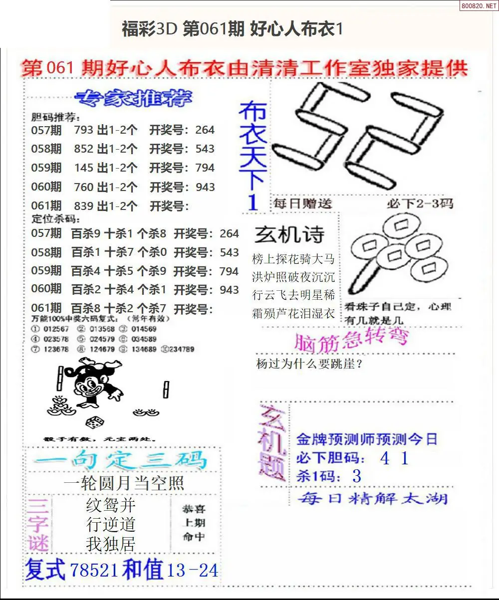 首页〉 3D图谜 走势图 3D胆码3D预测3D图谜3D字谜解太湖3D技巧3D条件3D杀码天齐图库走势图工具试机号 26061期精华布衣123456+好心+早版12 专题:精布衣 发布时间:2026-03-11 19:48 开奖:3D开奖结果3D近10期试机号 推荐:宝彩APP 免费方案 智能荐号 热点导航 公告: 天齐新版APP<中大多>上线,点击领鲜 最新文章 中大多 3D第2026061组选形态(限10名) 3D第2026061直选特邀专家 2026年061期3D图谜汇总(九)2026年061期3D图谜汇总(八)2026年061期3D图谜汇总(七)2026年061期3d图迷汇总(六)2026年061期3d图谜汇总(五)2026年061期3D图迷汇总(四) 更多3D图谜 > 福彩3D 双色球 大乐透 排列三 更多> 3D胆码 3D预测 3D字谜 3D图谜 解太湖 3D条件 3D杀码 P3预测 P3图谜 P3字谜 P3条件 P3胆码 P3杀码 热点导航 天齐图库 走势图 工具图表 试机号 宝彩专家 智能荐号 菜单导航 关闭 福彩3D 3D专家 3D胆码 3D预测 3D字谜 3D图谜 解太湖 3D条件 3D杀码 3D技巧 3D走势图 体彩P3/P5 P3专家 P3预测 P3图谜 P3字谜 P3条件 P3胆码 P3杀码 P5预测 P3走势图 双色球 双色球专家 双色球预测 双色球杀号 双色球字图 双色球胆码 双色球走势 双色球技巧 大乐透 大乐透专家 大乐透预测 大乐透杀号 大乐透胆码 大乐透技巧 大乐透走势 天齐图库 七星彩 七星彩专家 七星彩预测 七星彩图谜 七星彩杀号 七星彩技巧 七星彩走势 天齐走势 七乐彩 七乐彩专家 七乐彩预测 七乐彩杀号 七乐彩技巧 七乐彩走势 热点导航 彩宝网 宝彩网 宝彩网 开奖公告 宝彩专家 牛票票