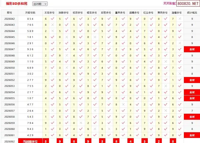 首页〉 3D条件 走势图 3D胆码3D预测3D图谜3D字谜解太湖3D技巧3D条件3D杀码天齐图库走势图工具试机号 26062期彩宝贝福彩3D杀和尾 专题:3d和尾十专家杀尾汇总 发布时间:2026-03-13 10:29 开奖:3D开奖结果3D近10期试机号 推荐:宝彩APP 免费方案 智能荐号 热点导航 公告: 天齐新版APP<中大多>上线,点击领鲜 最新文章 中大多 3D第2026062免费连中10期后在付款 3D第2026062徐文选3D直选已更新 [交友]第2026062期3D本期单挑和差2026年福彩3D062期[天涯草]精选断组-原创2026年福彩3D062期[圆圆]杀二码组合-原创2026年福彩3D062期[神算胆王]绝杀和值-原创2026年福彩3D062期[仙子]杀跨度-原创2026年福彩3D062期[截杀]杀两跨-原创 更多3D条件 > 福彩3D 双色球 大乐透 排列三 更多> 3D胆码 3D预测 3D字谜 3D图谜 解太湖 3D条件 3D杀码 P3预测 P3图谜 P3字谜 P3条件 P3胆码 P3杀码 热点导航 天齐图库 走势图 工具图表 试机号 宝彩专家 智能荐号 菜单导航 关闭 福彩3D 3D专家 3D胆码 3D预测 3D字谜 3D图谜 解太湖 3D条件 3D杀码 3D技巧 3D走势图 体彩P3/P5 P3专家 P3预测 P3图谜 P3字谜 P3条件 P3胆码 P3杀码 P5预测 P3走势图 双色球 双色球专家 双色球预测 双色球杀号 双色球字图 双色球胆码 双色球走势 双色球技巧 大乐透 大乐透专家 大乐透预测 大乐透杀号 大乐透胆码 大乐透技巧 大乐透走势 天齐图库 七星彩 七星彩专家 七星彩预测 七星彩图谜 七星彩杀号 七星彩技巧 七星彩走势 天齐走势 七乐彩 七乐彩专家 七乐彩预测 七乐彩杀号 七乐彩技巧 七乐彩走势 热点导航 彩宝网 宝彩网 宝彩网 开奖公告 宝彩专家 牛票票