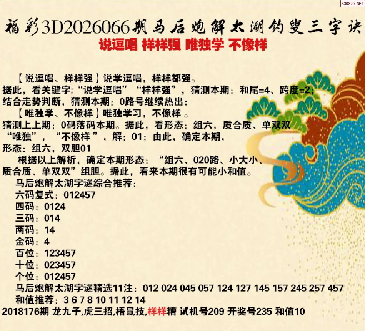 首页〉 解太湖 走势图 3D胆码3D预测3D图谜3D字谜解太湖3D技巧3D条件3D杀码天齐图库走势图工具试机号 26年066期马后炮解太湖字谜之-说逗唱 样样强 唯独学 不像样 专题:马后炮解太湖谜 发布时间:2026-03-16 20:30 开奖:3D开奖结果3D近10期试机号 推荐:宝彩APP 免费方案 智能荐号 热点导航 公告: 天齐新版APP<中大多>上线,点击领鲜 最新文章 中大多 3D第2026066特邀全部专家 3D第2026066免费一注%中奖 26年066期马后炮解太湖字谜之-说逗唱 样样强 唯独学 不像样066期天齐网解本期太湖字谜钓叟-说逗唱 样样强 唯独学 不像样26年066期 3D专家解今日太湖字谜汇总(天齐网整理汇总)26066期3D丹东解太湖 天龙一语 布衣神算26年066期孔方来萃专解太湖钓叟三字诀26066期太湖字谜钓叟 - 说逗唱 样样强 唯独学 不像样 更多解太湖 > 福彩3D 双色球 大乐透 排列三 更多> 3D胆码 3D预测 3D字谜 3D图谜 解太湖 3D条件 3D杀码 P3预测 P3图谜 P3字谜 P3条件 P3胆码 P3杀码 热点导航 天齐图库 走势图 工具图表 试机号 宝彩专家 智能荐号 菜单导航 关闭 福彩3D 3D专家 3D胆码 3D预测 3D字谜 3D图谜 解太湖 3D条件 3D杀码 3D技巧 3D走势图 体彩P3/P5 P3专家 P3预测 P3图谜 P3字谜 P3条件 P3胆码 P3杀码 P5预测 P3走势图 双色球 双色球专家 双色球预测 双色球杀号 双色球字图 双色球胆码 双色球走势 双色球技巧 大乐透 大乐透专家 大乐透预测 大乐透杀号 大乐透胆码 大乐透技巧 大乐透走势 天齐图库 七星彩 七星彩专家 七星彩预测 七星彩图谜 七星彩杀号 七星彩技巧 七星彩走势 天齐走势 七乐彩 七乐彩专家 七乐彩预测 七乐彩杀号 七乐彩技巧 七乐彩走势 热点导航 彩宝网 宝彩网 宝彩网 开奖公告 宝彩专家 牛票票