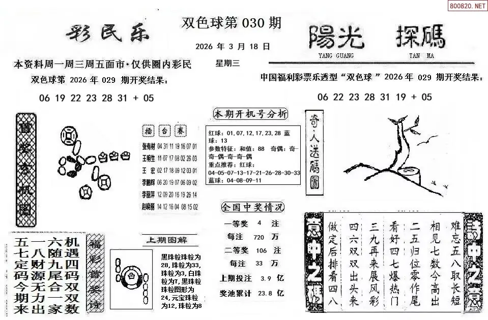 首页〉 双色球字图 走势图 双色球预测双色球杀号双色球技巧双色球字图双色球条件双色球胆码天齐图库走势图工具试机号 双色球26年030期阳光探码+彩民乐图谜 专题:彩民乐阳光探码 发布时间:2026-03-18 08:09 工具:双色球胆拖组号双色球缩水过滤 推荐:宝彩APP 免费方案 智能荐号 热点导航 公告: 天齐新版APP<中大多>上线,点击领鲜 最新文章 中大多 双色球第2026030独胆*双飞*3码精准 双色球第2026030组选形态(限10名) 26年030期双色球联销图(网络版)26年030期天齐网今晚双色球图谜总汇藏机图2026030期天齐原创双色球藏机图迷2026030期天齐网今晚双色球字谜总汇双色球26030期图迷画迷汇总(天齐整理)双色球26年030期天吉龙头凤尾鸟语断蓝图 更多双色球字图 > 福彩3D 双色球 大乐透 排列三 更多> 3D胆码 3D预测 3D字谜 3D图谜 解太湖 3D条件 3D杀码 P3预测 P3图谜 P3字谜 P3条件 P3胆码 P3杀码 热点导航 天齐图库 走势图 工具图表 试机号 宝彩专家 智能荐号 菜单导航 关闭 福彩3D 3D专家 3D胆码 3D预测 3D字谜 3D图谜 解太湖 3D条件 3D杀码 3D技巧 3D走势图 体彩P3/P5 P3专家 P3预测 P3图谜 P3字谜 P3条件 P3胆码 P3杀码 P5预测 P3走势图 双色球 双色球专家 双色球预测 双色球杀号 双色球字图 双色球胆码 双色球走势 双色球技巧 大乐透 大乐透专家 大乐透预测 大乐透杀号 大乐透胆码 大乐透技巧 大乐透走势 天齐图库 七星彩 七星彩专家 七星彩预测 七星彩图谜 七星彩杀号 七星彩技巧 七星彩走势 天齐走势 七乐彩 七乐彩专家 七乐彩预测 七乐彩杀号 七乐彩技巧 七乐彩走势 热点导航 彩宝网 宝彩网 宝彩网 开奖公告 宝彩专家 牛票票