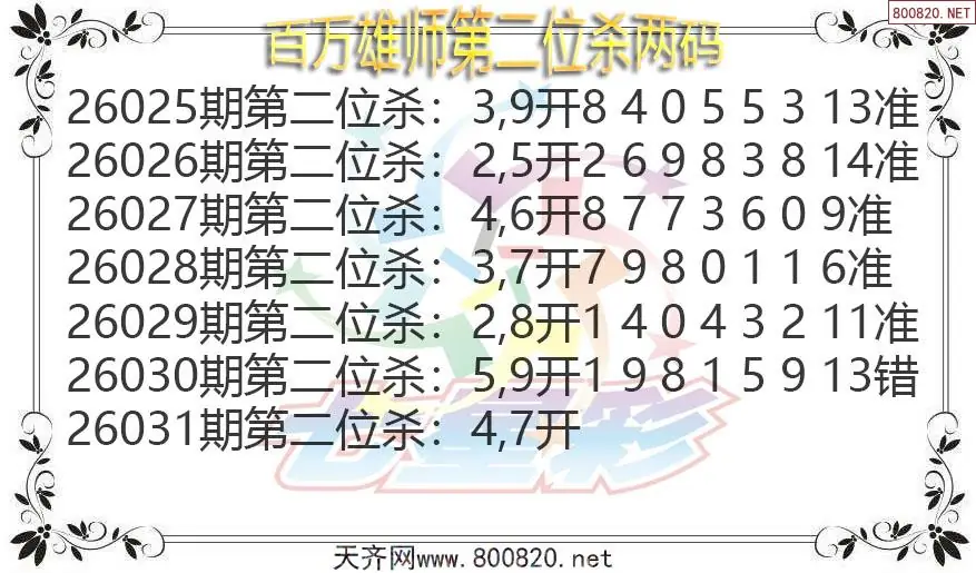 首页〉 七星彩图谜 走势图 七星彩预测七星彩图谜七星彩杀号七星彩技巧天齐图库走势图工具试机号 百万雄师26年031期七星彩杀号图谜 发布时间:2026-03-20 22:54 走势图:七星彩基本走势图七星彩期尾走势图 推荐:宝彩APP 免费方案 智能荐号 热点导航 公告: 天齐新版APP<中大多>上线,点击领鲜 最新文章 中大多 七星彩第2026031于海滨3D独胆 七星彩第2026031徐文选3D独胆已连准 2026年假老练031期七星彩杀号定胆图老顽童26年031期七星彩双胆图谜星光灿烂26年031期七星彩杀号图谜幸运彩26年031期七星彩杀号图谜元宝26年031期七星彩杀号图谜倾盆大雨26年031期七星彩杀号图谜 更多七星彩图谜 > 福彩3D 双色球 大乐透 排列三 更多> 3D胆码 3D预测 3D字谜 3D图谜 解太湖 3D条件 3D杀码 P3预测 P3图谜 P3字谜 P3条件 P3胆码 P3杀码 热点导航 天齐图库 走势图 工具图表 试机号 宝彩专家 智能荐号 菜单导航 关闭 福彩3D 3D专家 3D胆码 3D预测 3D字谜 3D图谜 解太湖 3D条件 3D杀码 3D技巧 3D走势图 体彩P3/P5 P3专家 P3预测 P3图谜 P3字谜 P3条件 P3胆码 P3杀码 P5预测 P3走势图 双色球 双色球专家 双色球预测 双色球杀号 双色球字图 双色球胆码 双色球走势 双色球技巧 大乐透 大乐透专家 大乐透预测 大乐透杀号 大乐透胆码 大乐透技巧 大乐透走势 天齐图库 七星彩 七星彩专家 七星彩预测 七星彩图谜 七星彩杀号 七星彩技巧 七星彩走势 天齐走势 七乐彩 七乐彩专家 七乐彩预测 七乐彩杀号 七乐彩技巧 七乐彩走势 热点导航 彩宝网 宝彩网 宝彩网 开奖公告 宝彩专家 牛票票