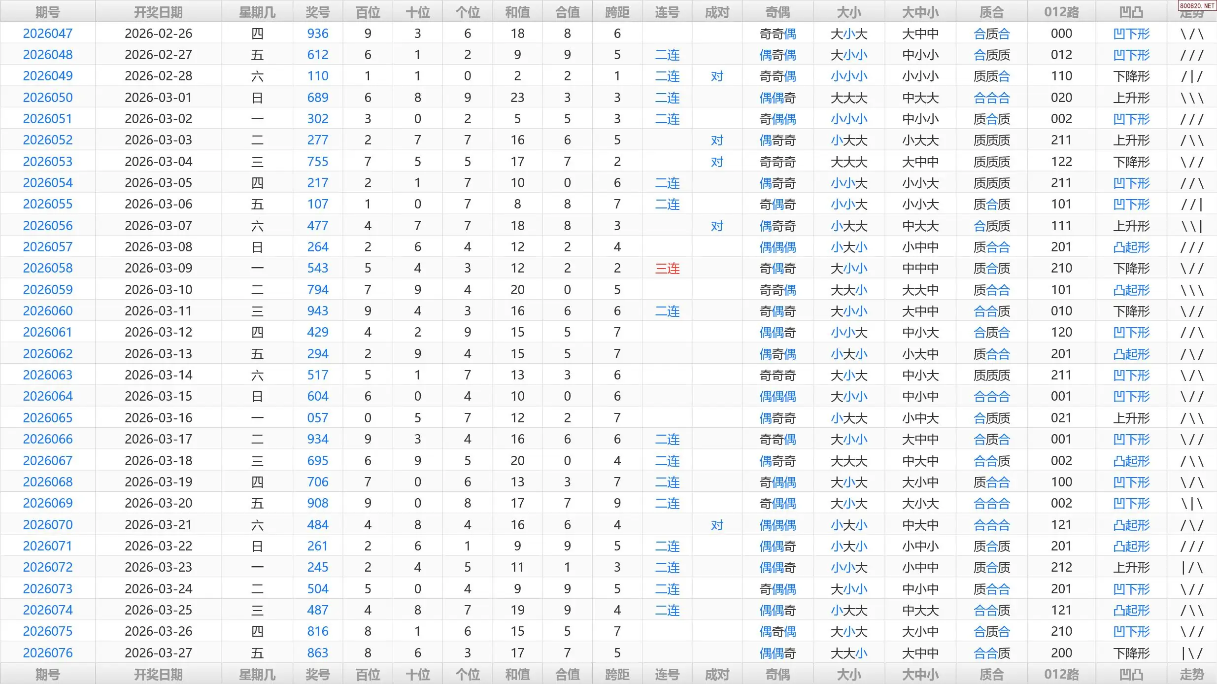首页〉 3D预测 走势图 3D胆码3D预测3D图谜3D字谜解太湖3D技巧3D条件3D杀码天齐图库走势图工具试机号 077期福彩3D历史开奖号码统计表 发布时间:2026-03-27 21:34 开奖:3D开奖结果3D近10期试机号 推荐:宝彩APP 免费方案 智能荐号 热点导航 公告: 天齐新版APP<中大多>上线,点击领鲜 最新文章 中大多 3D第2026077双飞独胆免费领取 3D第2026077直选5码(限10名) 26年077期每日天天彩于海滨3d号码精选胆077期福彩3D历史开奖号码统计表26年077期福彩3d校验码10526年077期孟庆会点评+专家一语定胆《保真》26年077期天齐收集彩吧论坛福彩3D原创预测汇总26年077期天齐福彩3D专家预测分析总汇[晚间版] 更多3D预测 > 福彩3D 双色球 大乐透 排列三 更多> 3D胆码 3D预测 3D字谜 3D图谜 解太湖 3D条件 3D杀码 P3预测 P3图谜 P3字谜 P3条件 P3胆码 P3杀码 热点导航 天齐图库 走势图 工具图表 试机号 宝彩专家 智能荐号 菜单导航 关闭 福彩3D 3D专家 3D胆码 3D预测 3D字谜 3D图谜 解太湖 3D条件 3D杀码 3D技巧 3D走势图 体彩P3/P5 P3专家 P3预测 P3图谜 P3字谜 P3条件 P3胆码 P3杀码 P5预测 P3走势图 双色球 双色球专家 双色球预测 双色球杀号 双色球字图 双色球胆码 双色球走势 双色球技巧 大乐透 大乐透专家 大乐透预测 大乐透杀号 大乐透胆码 大乐透技巧 大乐透走势 天齐图库 七星彩 七星彩专家 七星彩预测 七星彩图谜 七星彩杀号 七星彩技巧 七星彩走势 天齐走势 七乐彩 七乐彩专家 七乐彩预测 七乐彩杀号 七乐彩技巧 七乐彩走势 热点导航 彩宝网 宝彩网 宝彩网 开奖公告 宝彩专家 牛票票