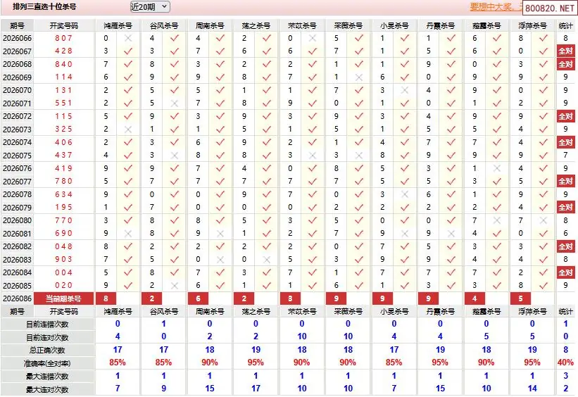 首页〉 P3杀码 走势图 P3预测P3图谜P3字谜P3技巧P3条件P3胆码P3杀码P5预测天齐图库走势图工具试机号 体彩P326年086期彩经彩票十大专家杀号 专题:p3十大专家杀号 发布时间:2026-04-06 10:02 工具:P3过滤缩水P3试机号走势图 推荐:宝彩APP 免费方案 智能荐号 热点导航 公告: 天齐新版APP<中大多>上线,点击领鲜 最新文章 中大多 排列三第2026086《直选一注连中3期》 排列三第2026086徐文选3D独胆已连准 [倪匡]体彩P3本期杀三码26年086期 85错51[许仲琳]体彩p3杀双胆26年086期 85错38[孟繁华]体彩P3绝杀独胆26年086期 85错20[曹文轩]排列三本期杀码26年086期 85错22[冰洁雪儿]体彩p3杀三胆26年086期 85错60[雪色无香]体彩P3杀三码推荐26年086期 85错51 更多P3杀码 > 福彩3D 双色球 大乐透 排列三 更多> 3D胆码 3D预测 3D字谜 3D图谜 解太湖 3D条件 3D杀码 P3预测 P3图谜 P3字谜 P3条件 P3胆码 P3杀码 热点导航 天齐图库 走势图 工具图表 试机号 宝彩专家 智能荐号 菜单导航 关闭 福彩3D 3D专家 3D胆码 3D预测 3D字谜 3D图谜 解太湖 3D条件 3D杀码 3D技巧 3D走势图 体彩P3/P5 P3专家 P3预测 P3图谜 P3字谜 P3条件 P3胆码 P3杀码 P5预测 P3走势图 双色球 双色球专家 双色球预测 双色球杀号 双色球字图 双色球胆码 双色球走势 双色球技巧 大乐透 大乐透专家 大乐透预测 大乐透杀号 大乐透胆码 大乐透技巧 大乐透走势 天齐图库 七星彩 七星彩专家 七星彩预测 七星彩图谜 七星彩杀号 七星彩技巧 七星彩走势 天齐走势 七乐彩 七乐彩专家 七乐彩预测 七乐彩杀号 七乐彩技巧 七乐彩走势 热点导航 彩宝网 宝彩网 宝彩网 开奖公告 宝彩专家 牛票票