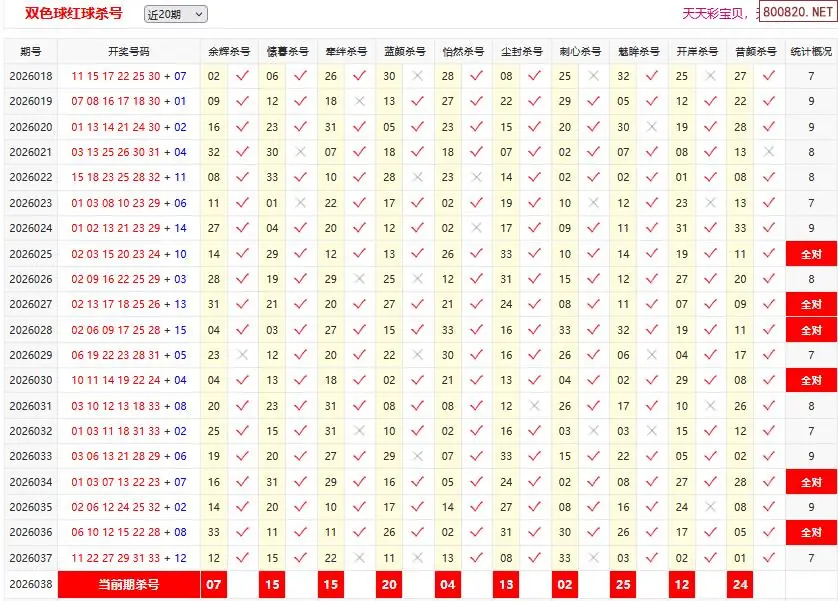首页〉 双色球杀号 走势图 双色球预测双色球杀号双色球技巧双色球字图双色球条件双色球胆码天齐图库走势图工具试机号 26038期彩宝贝双色球专家红球杀号 专题:澳客双色球红球杀号 发布时间:2026-04-06 10:02 工具:双色球胆拖组号双色球缩水过滤 推荐:宝彩APP 免费方案 智能荐号 热点导航 公告: 天齐新版APP<中大多>上线,点击领鲜 最新文章 中大多 双色球第2026038免费独胆连中五码 双色球第2026038真帝王宝图预测3D准 双色球2026年038期飞向阳光杀蓝预测图表福彩双色球26年038期[瓷娃娃]杀一蓝37对34双色球26年038期[太行山]福彩杀一蓝37对36福彩双色球26年038期[葡萄粒]杀一蓝37对36双色球26038期[推手]蓝球杀号37对36福彩双色球26年038期[绿毛龟]杀蓝37对37 更多双色球杀号 > 福彩3D 双色球 大乐透 排列三 更多> 3D胆码 3D预测 3D字谜 3D图谜 解太湖 3D条件 3D杀码 P3预测 P3图谜 P3字谜 P3条件 P3胆码 P3杀码 热点导航 天齐图库 走势图 工具图表 试机号 宝彩专家 智能荐号 菜单导航 关闭 福彩3D 3D专家 3D胆码 3D预测 3D字谜 3D图谜 解太湖 3D条件 3D杀码 3D技巧 3D走势图 体彩P3/P5 P3专家 P3预测 P3图谜 P3字谜 P3条件 P3胆码 P3杀码 P5预测 P3走势图 双色球 双色球专家 双色球预测 双色球杀号 双色球字图 双色球胆码 双色球走势 双色球技巧 大乐透 大乐透专家 大乐透预测 大乐透杀号 大乐透胆码 大乐透技巧 大乐透走势 天齐图库 七星彩 七星彩专家 七星彩预测 七星彩图谜 七星彩杀号 七星彩技巧 七星彩走势 天齐走势 七乐彩 七乐彩专家 七乐彩预测 七乐彩杀号 七乐彩技巧 七乐彩走势 热点导航 彩宝网 宝彩网 宝彩网 开奖公告 宝彩专家 牛票票