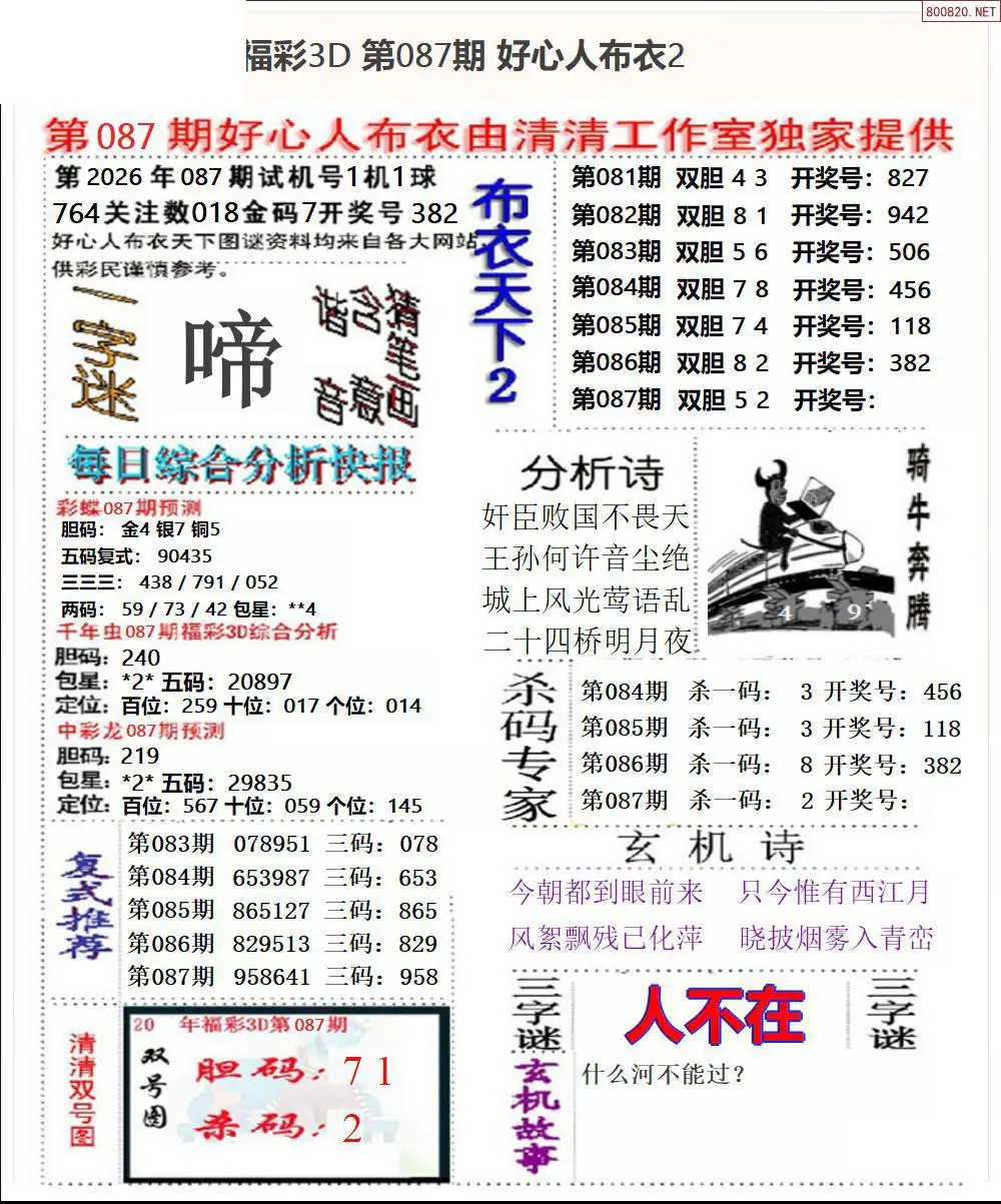 首页〉 3D图谜 走势图 3D胆码3D预测3D图谜3D字谜解太湖3D技巧3D条件3D杀码天齐图库走势图工具试机号 26087期精华布衣123456+好心+早版12 专题:精布衣 发布时间:2026-04-06 19:42 开奖:3D开奖结果3D近10期试机号 推荐:宝彩APP 免费方案 智能荐号 热点导航 公告: 天齐新版APP<中大多>上线,点击领鲜 最新文章 中大多 3D第2026087卜算子奇偶分析 3D第2026087于海滨一语定独胆准 2026年087期3D图谜汇总(九)2026年087期3D图谜汇总(八)2026年087期3D图谜汇总(七)2026年087期3d图迷汇总(六)2026年087期3d图谜汇总(五)2026年087期3D图迷汇总(四) 更多3D图谜 > 福彩3D 双色球 大乐透 排列三 更多> 3D胆码 3D预测 3D字谜 3D图谜 解太湖 3D条件 3D杀码 P3预测 P3图谜 P3字谜 P3条件 P3胆码 P3杀码 热点导航 天齐图库 走势图 工具图表 试机号 宝彩专家 智能荐号 菜单导航 关闭 福彩3D 3D专家 3D胆码 3D预测 3D字谜 3D图谜 解太湖 3D条件 3D杀码 3D技巧 3D走势图 体彩P3/P5 P3专家 P3预测 P3图谜 P3字谜 P3条件 P3胆码 P3杀码 P5预测 P3走势图 双色球 双色球专家 双色球预测 双色球杀号 双色球字图 双色球胆码 双色球走势 双色球技巧 大乐透 大乐透专家 大乐透预测 大乐透杀号 大乐透胆码 大乐透技巧 大乐透走势 天齐图库 七星彩 七星彩专家 七星彩预测 七星彩图谜 七星彩杀号 七星彩技巧 七星彩走势 天齐走势 七乐彩 七乐彩专家 七乐彩预测 七乐彩杀号 七乐彩技巧 七乐彩走势 热点导航 彩宝网 宝彩网 宝彩网 开奖公告 宝彩专家 牛票票