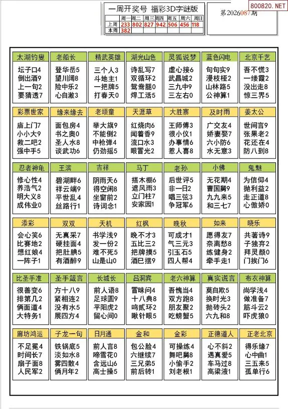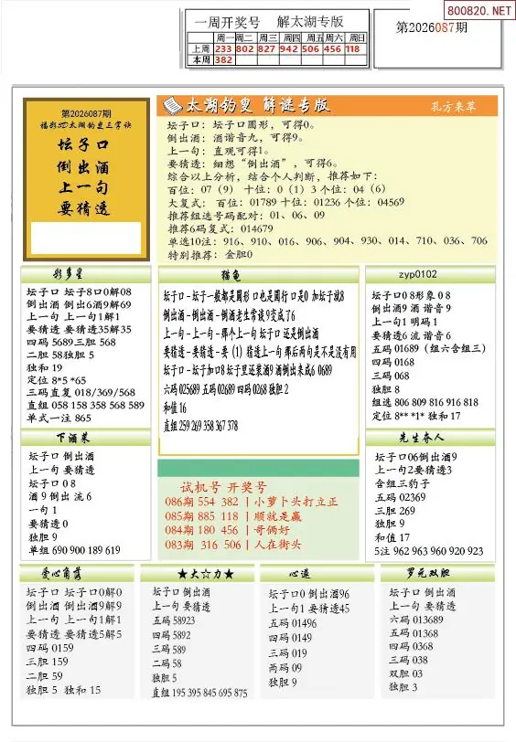 首页〉 3D图谜 走势图 3D胆码3D预测3D图谜3D字谜解太湖3D技巧3D条件3D杀码天齐图库走势图工具试机号 26年087期解太湖3d字图迷汇总彩报 专题:图谜总汇 发布时间:2026-04-07 08:20 开奖:3D开奖结果3D近10期试机号 推荐:宝彩APP 免费方案 智能荐号 热点导航 公告: 天齐新版APP<中大多>上线,点击领鲜 最新文章 中大多 3D第2026087精选一注直选推荐 3D第2026087独胆*双飞*三码 26年087期解太湖3d字图迷汇总彩报2026年087期3D图谜汇总(九)2026年087期3D图谜汇总(八)2026年087期3D图谜汇总(七)2026年087期3d图迷汇总(六)2026年087期3d图谜汇总(五) 更多3D图谜 > 福彩3D 双色球 大乐透 排列三 更多> 3D胆码 3D预测 3D字谜 3D图谜 解太湖 3D条件 3D杀码 P3预测 P3图谜 P3字谜 P3条件 P3胆码 P3杀码 热点导航 天齐图库 走势图 工具图表 试机号 宝彩专家 智能荐号 菜单导航 关闭 福彩3D 3D专家 3D胆码 3D预测 3D字谜 3D图谜 解太湖 3D条件 3D杀码 3D技巧 3D走势图 体彩P3/P5 P3专家 P3预测 P3图谜 P3字谜 P3条件 P3胆码 P3杀码 P5预测 P3走势图 双色球 双色球专家 双色球预测 双色球杀号 双色球字图 双色球胆码 双色球走势 双色球技巧 大乐透 大乐透专家 大乐透预测 大乐透杀号 大乐透胆码 大乐透技巧 大乐透走势 天齐图库 七星彩 七星彩专家 七星彩预测 七星彩图谜 七星彩杀号 七星彩技巧 七星彩走势 天齐走势 七乐彩 七乐彩专家 七乐彩预测 七乐彩杀号 七乐彩技巧 七乐彩走势 热点导航 彩宝网 宝彩网 宝彩网 开奖公告 宝彩专家 牛票票