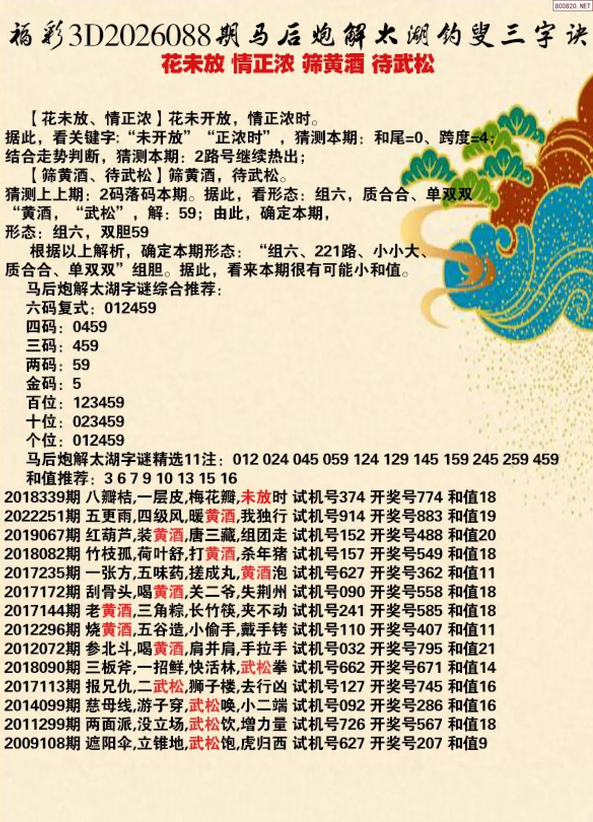 首页〉 解太湖 走势图 3D胆码3D预测3D图谜3D字谜解太湖3D技巧3D条件3D杀码天齐图库走势图工具试机号 26年088期马后炮解太湖字谜之-花未放 情正浓 筛黄酒 待武松 专题:马后炮解太湖谜 发布时间:2026-04-07 20:31 开奖:3D开奖结果3D近10期试机号 推荐:宝彩APP 免费方案 智能荐号 热点导航 公告: 天齐新版APP<中大多>上线,点击领鲜 最新文章 中大多 3D第2026088小蓝精灵独胆9中6 3D第2026088本期直选一注免费领取 26年088期马后炮解太湖字谜之-花未放 情正浓 筛黄酒 待武松26088期3D丹东解太湖 天龙一语 布衣神算26年088期白鱼舟太湖钓叟三字诀解谜天涯草解太湖26年088期太湖 筛黄酒福彩3D2026年087期[青龙]解太湖字谜之坛子口福彩3D2026年087期[鱼跃龙门]今期太湖钓叟解释 上一句 更多解太湖 > 福彩3D 双色球 大乐透 排列三 更多> 3D胆码 3D预测 3D字谜 3D图谜 解太湖 3D条件 3D杀码 P3预测 P3图谜 P3字谜 P3条件 P3胆码 P3杀码 热点导航 天齐图库 走势图 工具图表 试机号 宝彩专家 智能荐号 菜单导航 关闭 福彩3D 3D专家 3D胆码 3D预测 3D字谜 3D图谜 解太湖 3D条件 3D杀码 3D技巧 3D走势图 体彩P3/P5 P3专家 P3预测 P3图谜 P3字谜 P3条件 P3胆码 P3杀码 P5预测 P3走势图 双色球 双色球专家 双色球预测 双色球杀号 双色球字图 双色球胆码 双色球走势 双色球技巧 大乐透 大乐透专家 大乐透预测 大乐透杀号 大乐透胆码 大乐透技巧 大乐透走势 天齐图库 七星彩 七星彩专家 七星彩预测 七星彩图谜 七星彩杀号 七星彩技巧 七星彩走势 天齐走势 七乐彩 七乐彩专家 七乐彩预测 七乐彩杀号 七乐彩技巧 七乐彩走势 热点导航 彩宝网 宝彩网 宝彩网 开奖公告 宝彩专家 牛票票