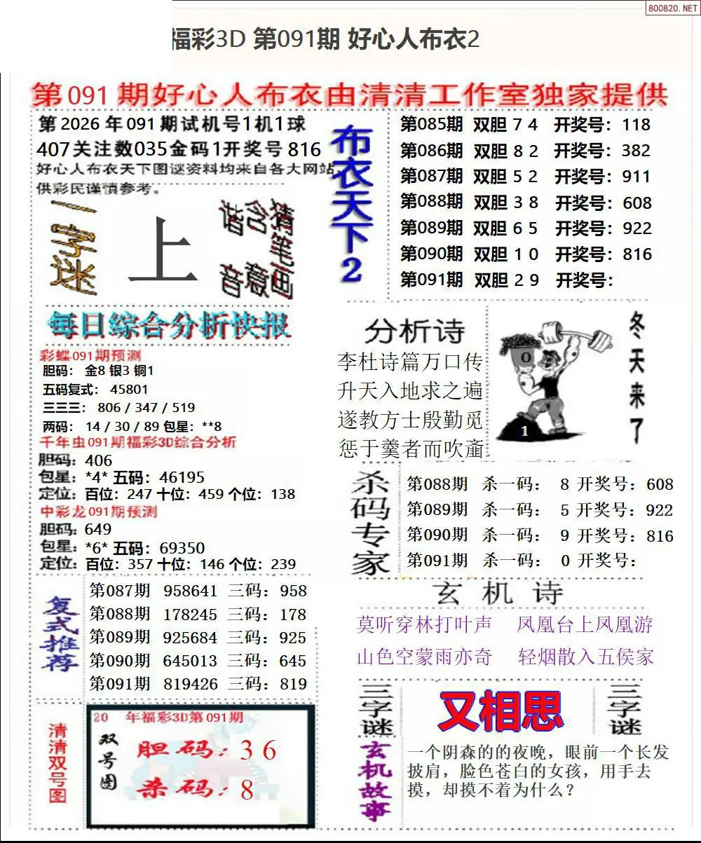 首页〉 3D图谜 走势图 3D胆码3D预测3D图谜3D字谜解太湖3D技巧3D条件3D杀码天齐图库走势图工具试机号 26091期精华布衣123456+好心+早版12 专题:精布衣 发布时间:2026-04-10 19:49 开奖:3D开奖结果3D近10期试机号 推荐:宝彩APP 免费方案 智能荐号 热点导航 公告: 天齐新版APP<中大多>上线,点击领鲜 最新文章 中大多 3D第2026091免费领取三注直选 3D第2026091徐文轩3D独胆 2026年091期3D图谜汇总(九)2026年091期3D图谜汇总(八)2026年091期3D图谜汇总(七)2026年091期3d图迷汇总(六)2026年091期3d图谜汇总(五)2026年091期3D图迷汇总(四) 更多3D图谜 > 福彩3D 双色球 大乐透 排列三 更多> 3D胆码 3D预测 3D字谜 3D图谜 解太湖 3D条件 3D杀码 P3预测 P3图谜 P3字谜 P3条件 P3胆码 P3杀码 热点导航 天齐图库 走势图 工具图表 试机号 宝彩专家 智能荐号 菜单导航 关闭 福彩3D 3D专家 3D胆码 3D预测 3D字谜 3D图谜 解太湖 3D条件 3D杀码 3D技巧 3D走势图 体彩P3/P5 P3专家 P3预测 P3图谜 P3字谜 P3条件 P3胆码 P3杀码 P5预测 P3走势图 双色球 双色球专家 双色球预测 双色球杀号 双色球字图 双色球胆码 双色球走势 双色球技巧 大乐透 大乐透专家 大乐透预测 大乐透杀号 大乐透胆码 大乐透技巧 大乐透走势 天齐图库 七星彩 七星彩专家 七星彩预测 七星彩图谜 七星彩杀号 七星彩技巧 七星彩走势 天齐走势 七乐彩 七乐彩专家 七乐彩预测 七乐彩杀号 七乐彩技巧 七乐彩走势 热点导航 彩宝网 宝彩网 宝彩网 开奖公告 宝彩专家 牛票票