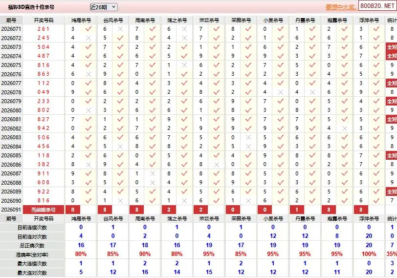 首页〉 3D杀码 走势图 3D胆码3D预测3D图谜3D字谜解太湖3D技巧3D条件3D杀码天齐图库走势图工具试机号 26年091期福彩3d彩经十大专家直选杀号 专题:3D杀码十专家 发布时间:2026-04-11 10:18 开奖:3D开奖结果3D近10期试机号 推荐:宝彩APP 免费方案 智能荐号 热点导航 公告: 天齐新版APP<中大多>上线,点击领鲜 最新文章 中大多 3D第2026091徐文选3D独胆已连准 3D第2026091免费独胆连中五码 26年091期[浮梦一生]3d杀一胆 90错2626年091期[醉相思]3d杀一码 90错1926年091期[忆往昔]3d本期杀号 90错2926年091期[顾棋]本期3d杀号 90错2526年091期[孤影梵然]杀双胆 90错4226年091期[流星风雨]3d杀一码 90错39 更多3D杀码 > 福彩3D 双色球 大乐透 排列三 更多> 3D胆码 3D预测 3D字谜 3D图谜 解太湖 3D条件 3D杀码 P3预测 P3图谜 P3字谜 P3条件 P3胆码 P3杀码 热点导航 天齐图库 走势图 工具图表 试机号 宝彩专家 智能荐号 菜单导航 关闭 福彩3D 3D专家 3D胆码 3D预测 3D字谜 3D图谜 解太湖 3D条件 3D杀码 3D技巧 3D走势图 体彩P3/P5 P3专家 P3预测 P3图谜 P3字谜 P3条件 P3胆码 P3杀码 P5预测 P3走势图 双色球 双色球专家 双色球预测 双色球杀号 双色球字图 双色球胆码 双色球走势 双色球技巧 大乐透 大乐透专家 大乐透预测 大乐透杀号 大乐透胆码 大乐透技巧 大乐透走势 天齐图库 七星彩 七星彩专家 七星彩预测 七星彩图谜 七星彩杀号 七星彩技巧 七星彩走势 天齐走势 七乐彩 七乐彩专家 七乐彩预测 七乐彩杀号 七乐彩技巧 七乐彩走势 热点导航 彩宝网 宝彩网 宝彩网 开奖公告 宝彩专家 牛票票