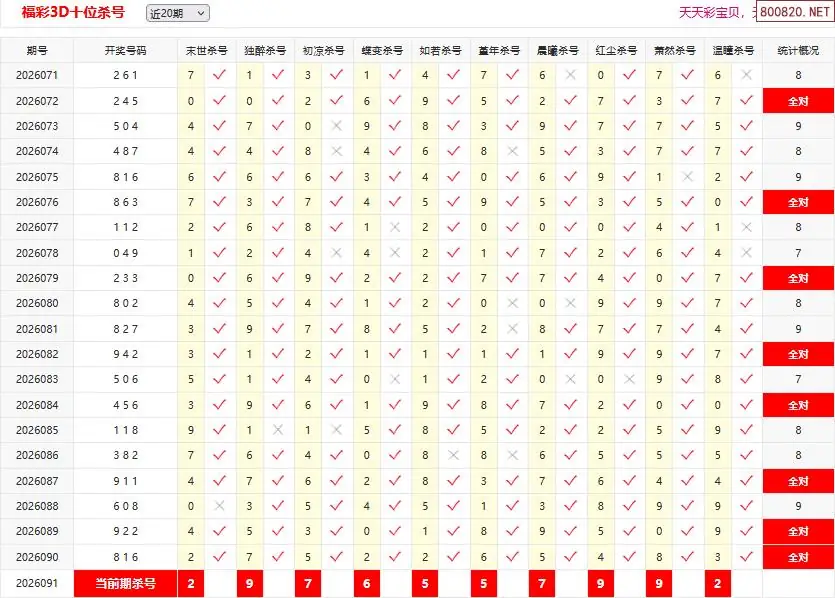 首页〉 3D杀码 走势图 3D胆码3D预测3D图谜3D字谜解太湖3D技巧3D条件3D杀码天齐图库走势图工具试机号 26091期彩宝贝福彩3D百十个位杀号 专题:3D杀码十专家 发布时间:2026-04-11 10:18 开奖:3D开奖结果3D近10期试机号 推荐:宝彩APP 免费方案 智能荐号 热点导航 公告: 天齐新版APP<中大多>上线,点击领鲜 最新文章 中大多 3D第2026091于海滨一语定独胆准 3D第2026091真帝王宝图预测3D准 26年091期[浮梦一生]3d杀一胆 90错2626年091期[醉相思]3d杀一码 90错1926年091期[忆往昔]3d本期杀号 90错2926年091期[顾棋]本期3d杀号 90错2526年091期[孤影梵然]杀双胆 90错4226年091期[流星风雨]3d杀一码 90错39 更多3D杀码 > 福彩3D 双色球 大乐透 排列三 更多> 3D胆码 3D预测 3D字谜 3D图谜 解太湖 3D条件 3D杀码 P3预测 P3图谜 P3字谜 P3条件 P3胆码 P3杀码 热点导航 天齐图库 走势图 工具图表 试机号 宝彩专家 智能荐号 菜单导航 关闭 福彩3D 3D专家 3D胆码 3D预测 3D字谜 3D图谜 解太湖 3D条件 3D杀码 3D技巧 3D走势图 体彩P3/P5 P3专家 P3预测 P3图谜 P3字谜 P3条件 P3胆码 P3杀码 P5预测 P3走势图 双色球 双色球专家 双色球预测 双色球杀号 双色球字图 双色球胆码 双色球走势 双色球技巧 大乐透 大乐透专家 大乐透预测 大乐透杀号 大乐透胆码 大乐透技巧 大乐透走势 天齐图库 七星彩 七星彩专家 七星彩预测 七星彩图谜 七星彩杀号 七星彩技巧 七星彩走势 天齐走势 七乐彩 七乐彩专家 七乐彩预测 七乐彩杀号 七乐彩技巧 七乐彩走势 热点导航 彩宝网 宝彩网 宝彩网 开奖公告 宝彩专家 牛票票