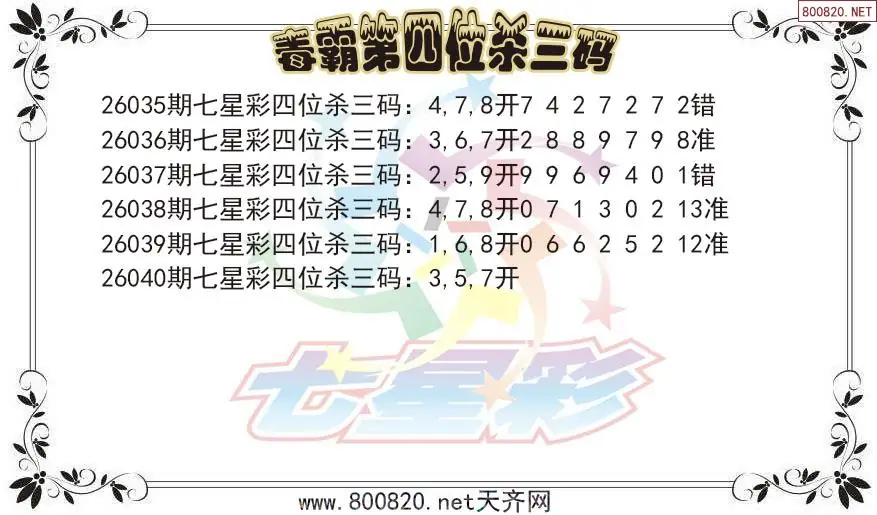 首页〉 七星彩图谜 走势图 七星彩预测七星彩图谜七星彩杀号七星彩技巧天齐图库走势图工具试机号 毒霸26年040期七星彩杀号图谜 发布时间:2026-04-11 11:15 走势图:七星彩基本走势图七星彩期尾走势图 推荐:宝彩APP 免费方案 智能荐号 热点导航 公告: 天齐新版APP<中大多>上线,点击领鲜 最新文章 中大多 七星彩第2026040免费试料10期 七星彩第2026040老北京3D独胆 七星彩2026040期燕赤霞不定位杀码图毒霸26年040期七星彩杀号图谜小尼姑玩彩26年040期七星彩后区胆码图谜太上道祖26年040期七星彩杀号图谜周伯通2026040期七星彩杀号推荐图华山神道26年040期七星彩杀号图谜 更多七星彩图谜 > 福彩3D 双色球 大乐透 排列三 更多> 3D胆码 3D预测 3D字谜 3D图谜 解太湖 3D条件 3D杀码 P3预测 P3图谜 P3字谜 P3条件 P3胆码 P3杀码 热点导航 天齐图库 走势图 工具图表 试机号 宝彩专家 智能荐号 菜单导航 关闭 福彩3D 3D专家 3D胆码 3D预测 3D字谜 3D图谜 解太湖 3D条件 3D杀码 3D技巧 3D走势图 体彩P3/P5 P3专家 P3预测 P3图谜 P3字谜 P3条件 P3胆码 P3杀码 P5预测 P3走势图 双色球 双色球专家 双色球预测 双色球杀号 双色球字图 双色球胆码 双色球走势 双色球技巧 大乐透 大乐透专家 大乐透预测 大乐透杀号 大乐透胆码 大乐透技巧 大乐透走势 天齐图库 七星彩 七星彩专家 七星彩预测 七星彩图谜 七星彩杀号 七星彩技巧 七星彩走势 天齐走势 七乐彩 七乐彩专家 七乐彩预测 七乐彩杀号 七乐彩技巧 七乐彩走势 热点导航 彩宝网 宝彩网 宝彩网 开奖公告 宝彩专家 牛票票
