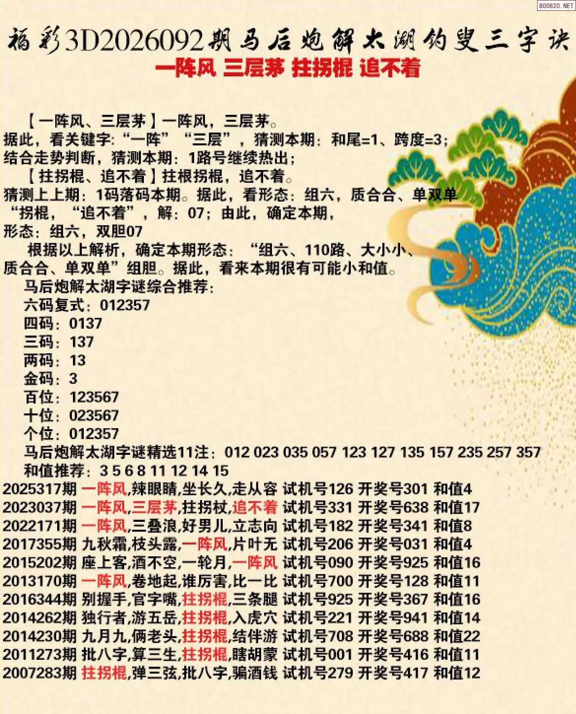 首页〉 解太湖 走势图 3D胆码3D预测3D图谜3D字谜解太湖3D技巧3D条件3D杀码天齐图库走势图工具试机号 26年092期马后炮解太湖字谜之-一阵风 三层茅 拄拐棍 追不着 专题:马后炮解太湖谜 发布时间:2026-04-11 20:26 开奖:3D开奖结果3D近10期试机号 推荐:宝彩APP 免费方案 智能荐号 热点导航 公告: 天齐新版APP<中大多>上线,点击领鲜 最新文章 中大多 3D第20260923D六鬼5码复试5中4 3D第20260925码定位直选(限10名) 26年092期马后炮解太湖字谜之-一阵风 三层茅 拄拐棍 追不着26092期3D丹东解太湖 天龙一语 布衣神算天涯草解太湖26年092期太湖 拄拐棍福彩3D2026年091期[朱雀]巧解太湖钓叟谜 不讲理福彩3D2026年091期[白虎]解太湖谚语 三寸舌福彩3D2026年091期[青龙]解太湖字谜之一张嘴 更多解太湖 > 福彩3D 双色球 大乐透 排列三 更多> 3D胆码 3D预测 3D字谜 3D图谜 解太湖 3D条件 3D杀码 P3预测 P3图谜 P3字谜 P3条件 P3胆码 P3杀码 热点导航 天齐图库 走势图 工具图表 试机号 宝彩专家 智能荐号 菜单导航 关闭 福彩3D 3D专家 3D胆码 3D预测 3D字谜 3D图谜 解太湖 3D条件 3D杀码 3D技巧 3D走势图 体彩P3/P5 P3专家 P3预测 P3图谜 P3字谜 P3条件 P3胆码 P3杀码 P5预测 P3走势图 双色球 双色球专家 双色球预测 双色球杀号 双色球字图 双色球胆码 双色球走势 双色球技巧 大乐透 大乐透专家 大乐透预测 大乐透杀号 大乐透胆码 大乐透技巧 大乐透走势 天齐图库 七星彩 七星彩专家 七星彩预测 七星彩图谜 七星彩杀号 七星彩技巧 七星彩走势 天齐走势 七乐彩 七乐彩专家 七乐彩预测 七乐彩杀号 七乐彩技巧 七乐彩走势 热点导航 彩宝网 宝彩网 宝彩网 开奖公告 宝彩专家 牛票票