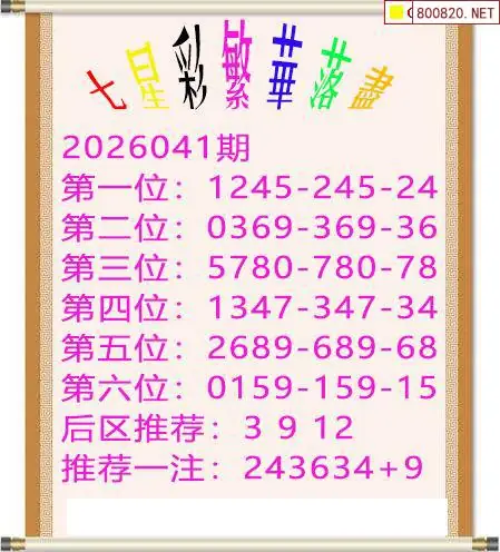 首页〉 七星彩图谜 走势图 七星彩预测七星彩图谜七星彩杀号七星彩技巧天齐图库走势图工具试机号 七星彩26041期繁华落尽胆组图迷 发布时间:2026-04-12 23:01 走势图:七星彩基本走势图七星彩期尾走势图 推荐:宝彩APP 免费方案 智能荐号 热点导航 公告: 天齐新版APP<中大多>上线,点击领鲜 最新文章 中大多 七星彩第2026041独家推荐料一码 七星彩第2026041直选特邀专家 七星彩26年第041期四季如春定位杀码图迷七星彩26041期繁华落尽胆组图迷七星彩2026041期金色年华胆码推荐图迷2026年040期龟丞相七星彩三码预测图豆豆先生2026040期七星彩三胆推荐图2026年老酒鬼040期七星彩胆码推测图 更多七星彩图谜 > 福彩3D 双色球 大乐透 排列三 更多> 3D胆码 3D预测 3D字谜 3D图谜 解太湖 3D条件 3D杀码 P3预测 P3图谜 P3字谜 P3条件 P3胆码 P3杀码 热点导航 天齐图库 走势图 工具图表 试机号 宝彩专家 智能荐号 菜单导航 关闭 福彩3D 3D专家 3D胆码 3D预测 3D字谜 3D图谜 解太湖 3D条件 3D杀码 3D技巧 3D走势图 体彩P3/P5 P3专家 P3预测 P3图谜 P3字谜 P3条件 P3胆码 P3杀码 P5预测 P3走势图 双色球 双色球专家 双色球预测 双色球杀号 双色球字图 双色球胆码 双色球走势 双色球技巧 大乐透 大乐透专家 大乐透预测 大乐透杀号 大乐透胆码 大乐透技巧 大乐透走势 天齐图库 七星彩 七星彩专家 七星彩预测 七星彩图谜 七星彩杀号 七星彩技巧 七星彩走势 天齐走势 七乐彩 七乐彩专家 七乐彩预测 七乐彩杀号 七乐彩技巧 七乐彩走势 热点导航 彩宝网 宝彩网 宝彩网 开奖公告 宝彩专家 牛票票
