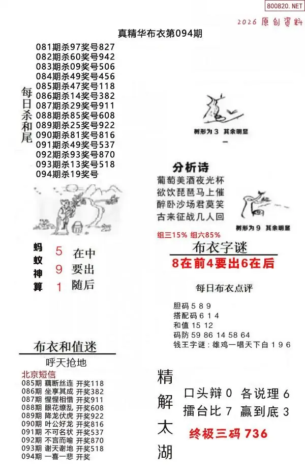 首页〉 3D图谜 走势图 3D胆码3D预测3D图谜3D字谜解太湖3D技巧3D条件3D杀码天齐图库走势图工具试机号 26094期精华布衣123456+好心+早版12 专题:精布衣 发布时间:2026-04-13 19:47 开奖:3D开奖结果3D近10期试机号 推荐:宝彩APP 免费方案 智能荐号 热点导航 公告: 天齐新版APP<中大多>上线,点击领鲜 最新文章 中大多 3D第2026099《红球双胆分析》 3D第2026099五码推荐10连中3 2026年100期3D图谜汇总(七)2026年100期3d图谜汇总(五)2026年100期3D图迷汇总(四)2026年100期3d图迷汇总(三)2026年100期3D图谜汇总(二)2026年100期3D图谜汇总(一) 更多3D图谜 > 福彩3D 双色球 大乐透 排列三 更多> 3D胆码 3D预测 3D字谜 3D图谜 解太湖 3D条件 3D杀码 P3预测 P3图谜 P3字谜 P3条件 P3胆码 P3杀码 热点导航 天齐图库 走势图 工具图表 试机号 宝彩专家 智能荐号 菜单导航 关闭 福彩3D 3D专家 3D胆码 3D预测 3D字谜 3D图谜 解太湖 3D条件 3D杀码 3D技巧 3D走势图 体彩P3/P5 P3专家 P3预测 P3图谜 P3字谜 P3条件 P3胆码 P3杀码 P5预测 P3走势图 双色球 双色球专家 双色球预测 双色球杀号 双色球字图 双色球胆码 双色球走势 双色球技巧 大乐透 大乐透专家 大乐透预测 大乐透杀号 大乐透胆码 大乐透技巧 大乐透走势 天齐图库 七星彩 七星彩专家 七星彩预测 七星彩图谜 七星彩杀号 七星彩技巧 七星彩走势 天齐走势 七乐彩 七乐彩专家 七乐彩预测 七乐彩杀号 七乐彩技巧 七乐彩走势 热点导航 彩宝网 宝彩网 宝彩网 开奖公告 宝彩专家 牛票票
