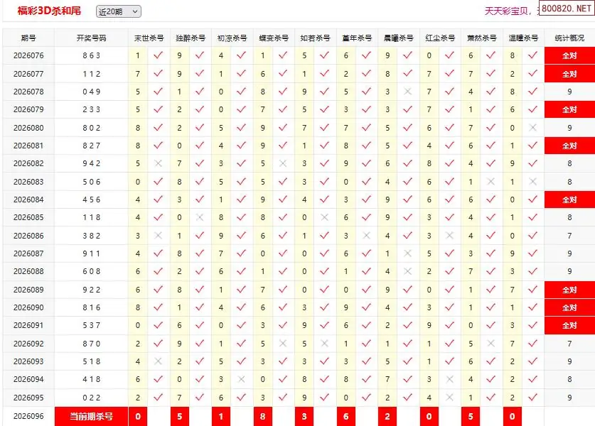 首页〉 3D条件 走势图 3D胆码3D预测3D图谜3D字谜解太湖3D技巧3D条件3D杀码天齐图库走势图工具试机号 26096期彩宝贝福彩3D杀和尾 专题:3d和尾十专家杀尾汇总 发布时间:2026-04-16 10:53 开奖:3D开奖结果3D近10期试机号 推荐:宝彩APP 免费方案 智能荐号 热点导航 公告: 天齐新版APP<中大多>上线,点击领鲜 最新文章 中大多 3D第2026096于海滨3D胆码预测 3D第2026096徐文轩3D直选 26096期[半个故人]3d杀跨度(原创)[交友]第2026096期3D本期单挑和差2026年福彩3D096期[天涯草]精选断组-原创2026年福彩3D096期[圆圆]杀二码组合-原创2026年福彩3D096期[神算胆王]绝杀和值-原创2026年福彩3D096期[仙子]杀跨度-原创 更多3D条件 > 福彩3D 双色球 大乐透 排列三 更多> 3D胆码 3D预测 3D字谜 3D图谜 解太湖 3D条件 3D杀码 P3预测 P3图谜 P3字谜 P3条件 P3胆码 P3杀码 热点导航 天齐图库 走势图 工具图表 试机号 宝彩专家 智能荐号 菜单导航 关闭 福彩3D 3D专家 3D胆码 3D预测 3D字谜 3D图谜 解太湖 3D条件 3D杀码 3D技巧 3D走势图 体彩P3/P5 P3专家 P3预测 P3图谜 P3字谜 P3条件 P3胆码 P3杀码 P5预测 P3走势图 双色球 双色球专家 双色球预测 双色球杀号 双色球字图 双色球胆码 双色球走势 双色球技巧 大乐透 大乐透专家 大乐透预测 大乐透杀号 大乐透胆码 大乐透技巧 大乐透走势 天齐图库 七星彩 七星彩专家 七星彩预测 七星彩图谜 七星彩杀号 七星彩技巧 七星彩走势 天齐走势 七乐彩 七乐彩专家 七乐彩预测 七乐彩杀号 七乐彩技巧 七乐彩走势 热点导航 彩宝网 宝彩网 宝彩网 开奖公告 宝彩专家 牛票票