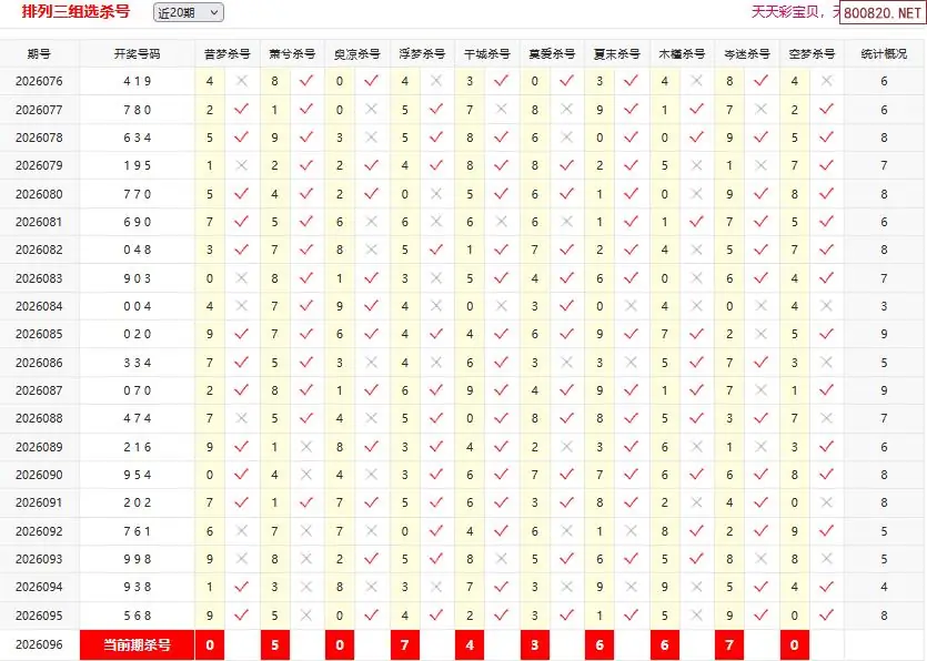 首页〉 P3杀码 走势图 P3预测P3图谜P3字谜P3技巧P3条件P3胆码P3杀码P5预测天齐图库走势图工具试机号 体彩p326096期彩宝贝十大专家排三组选杀号 专题:p3十大专家杀号 发布时间:2026-04-16 10:53 工具:P3过滤缩水P3试机号走势图 推荐:宝彩APP 免费方案 智能荐号 热点导航 公告: 天齐新版APP<中大多>上线,点击领鲜 最新文章 中大多 排列三第2026096组选形态(限10名) 排列三第2026096于海滨3D胆码预测 [倪匡]体彩P3本期杀三码26年096期 95错56[许仲琳]体彩p3杀双胆26年096期 95错41[孟繁华]体彩P3绝杀独胆26年096期 95错23[曹文轩]排列三本期杀码26年096期 95错25[冰洁雪儿]体彩p3杀三胆26年096期 95错69[雪色无香]体彩P3杀三码推荐26年096期 95错56 更多P3杀码 > 福彩3D 双色球 大乐透 排列三 更多> 3D胆码 3D预测 3D字谜 3D图谜 解太湖 3D条件 3D杀码 P3预测 P3图谜 P3字谜 P3条件 P3胆码 P3杀码 热点导航 天齐图库 走势图 工具图表 试机号 宝彩专家 智能荐号 菜单导航 关闭 福彩3D 3D专家 3D胆码 3D预测 3D字谜 3D图谜 解太湖 3D条件 3D杀码 3D技巧 3D走势图 体彩P3/P5 P3专家 P3预测 P3图谜 P3字谜 P3条件 P3胆码 P3杀码 P5预测 P3走势图 双色球 双色球专家 双色球预测 双色球杀号 双色球字图 双色球胆码 双色球走势 双色球技巧 大乐透 大乐透专家 大乐透预测 大乐透杀号 大乐透胆码 大乐透技巧 大乐透走势 天齐图库 七星彩 七星彩专家 七星彩预测 七星彩图谜 七星彩杀号 七星彩技巧 七星彩走势 天齐走势 七乐彩 七乐彩专家 七乐彩预测 七乐彩杀号 七乐彩技巧 七乐彩走势 热点导航 彩宝网 宝彩网 宝彩网 开奖公告 宝彩专家 牛票票