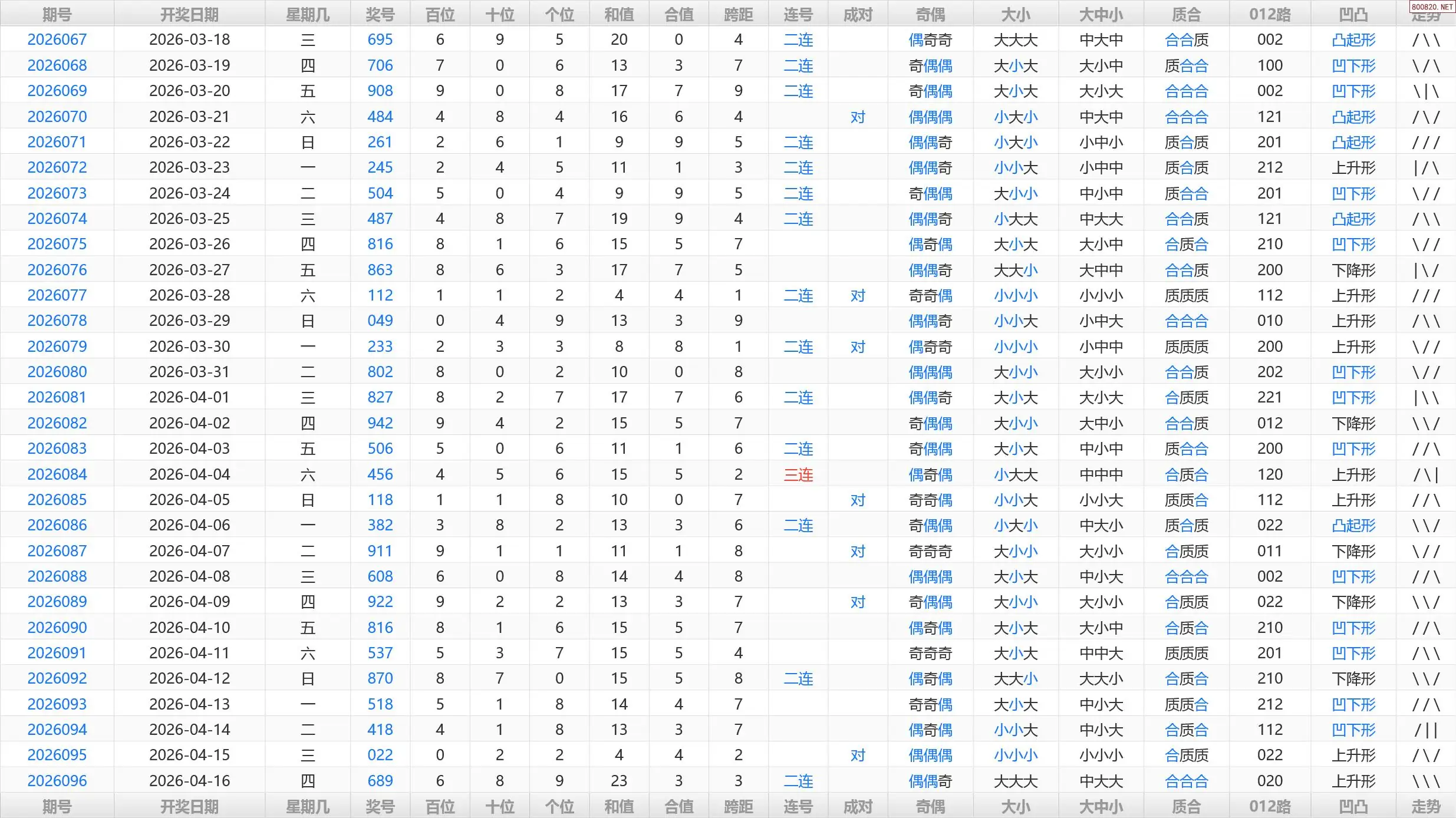 首页〉 3D预测 走势图 3D胆码3D预测3D图谜3D字谜解太湖3D技巧3D条件3D杀码天齐图库走势图工具试机号 097期福彩3D历史开奖号码统计表 发布时间:2026-04-16 21:48 开奖:3D开奖结果3D近10期试机号 推荐:宝彩APP 免费方案 智能荐号 热点导航 公告: 天齐新版APP<中大多>上线,点击领鲜 最新文章 中大多 3D第2026097免费领取三注直选 3D第2026097真帝王宝图预测3D准 组选奖号689出现的前后关系26097期3D于海滨点评+专家一语定胆《保真》26年097期彩友吧各路3d专家预测分析汇总(天齐整理发布)26年097期3d启机开机号+夏兰{边城金码}26年097期每日天天彩于海滨3d号码精选胆26年097期福彩3d校验码105 更多3D预测 > 福彩3D 双色球 大乐透 排列三 更多> 3D胆码 3D预测 3D字谜 3D图谜 解太湖 3D条件 3D杀码 P3预测 P3图谜 P3字谜 P3条件 P3胆码 P3杀码 热点导航 天齐图库 走势图 工具图表 试机号 宝彩专家 智能荐号 菜单导航 关闭 福彩3D 3D专家 3D胆码 3D预测 3D字谜 3D图谜 解太湖 3D条件 3D杀码 3D技巧 3D走势图 体彩P3/P5 P3专家 P3预测 P3图谜 P3字谜 P3条件 P3胆码 P3杀码 P5预测 P3走势图 双色球 双色球专家 双色球预测 双色球杀号 双色球字图 双色球胆码 双色球走势 双色球技巧 大乐透 大乐透专家 大乐透预测 大乐透杀号 大乐透胆码 大乐透技巧 大乐透走势 天齐图库 七星彩 七星彩专家 七星彩预测 七星彩图谜 七星彩杀号 七星彩技巧 七星彩走势 天齐走势 七乐彩 七乐彩专家 七乐彩预测 七乐彩杀号 七乐彩技巧 七乐彩走势 热点导航 彩宝网 宝彩网 宝彩网 开奖公告 宝彩专家 牛票票