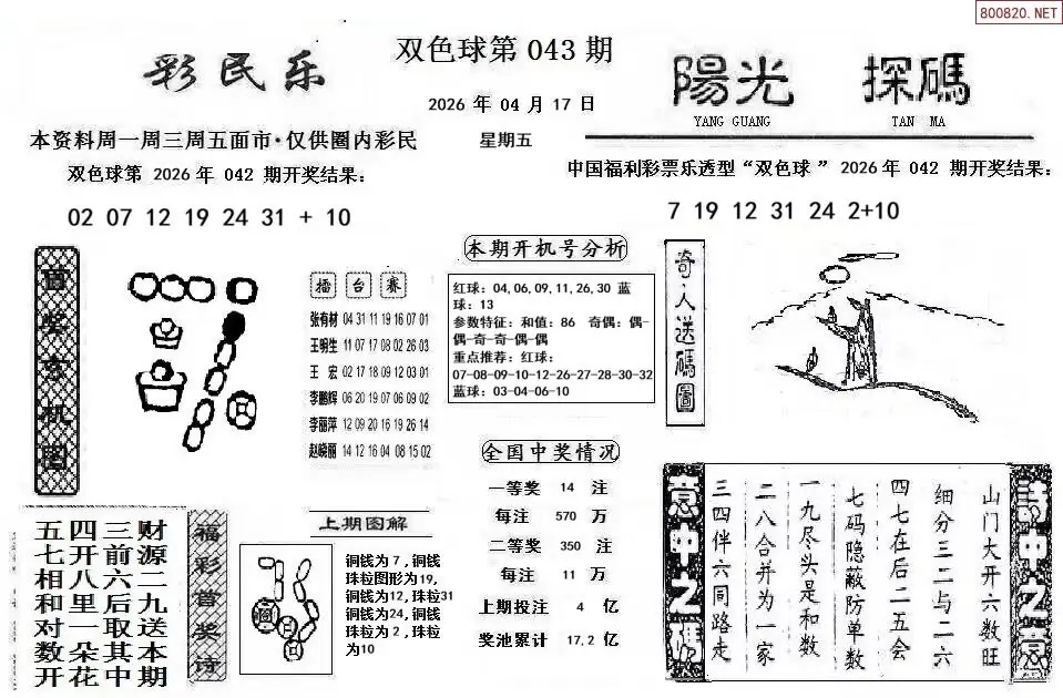 首页〉 双色球字图 走势图 双色球预测双色球杀号双色球技巧双色球字图双色球条件双色球胆码天齐图库走势图工具试机号 双色球23年043期阳光探码+彩民乐图谜 专题:彩民乐阳光探码 发布时间:2026-04-17 08:29 工具:双色球胆拖组号双色球缩水过滤 推荐:宝彩APP 免费方案 智能荐号 热点导航 公告: 天齐新版APP<中大多>上线,点击领鲜 最新文章 中大多 双色球第2026043徐文选3D直选已更新 双色球第2026043丹东鬼六预测准 双色球23年043期阳光探码+彩民乐图谜26年043期双色球联销图(网络版)藏机图2026043期天齐原创双色球藏机图迷2026043期天齐网今晚双色球字谜总汇双色球26043期图迷画迷汇总(天齐整理)双色球26年043期天吉龙头凤尾鸟语断蓝图 更多双色球字图 > 福彩3D 双色球 大乐透 排列三 更多> 3D胆码 3D预测 3D字谜 3D图谜 解太湖 3D条件 3D杀码 P3预测 P3图谜 P3字谜 P3条件 P3胆码 P3杀码 热点导航 天齐图库 走势图 工具图表 试机号 宝彩专家 智能荐号 菜单导航 关闭 福彩3D 3D专家 3D胆码 3D预测 3D字谜 3D图谜 解太湖 3D条件 3D杀码 3D技巧 3D走势图 体彩P3/P5 P3专家 P3预测 P3图谜 P3字谜 P3条件 P3胆码 P3杀码 P5预测 P3走势图 双色球 双色球专家 双色球预测 双色球杀号 双色球字图 双色球胆码 双色球走势 双色球技巧 大乐透 大乐透专家 大乐透预测 大乐透杀号 大乐透胆码 大乐透技巧 大乐透走势 天齐图库 七星彩 七星彩专家 七星彩预测 七星彩图谜 七星彩杀号 七星彩技巧 七星彩走势 天齐走势 七乐彩 七乐彩专家 七乐彩预测 七乐彩杀号 七乐彩技巧 七乐彩走势 热点导航 彩宝网 宝彩网 宝彩网 开奖公告 宝彩专家 牛票票