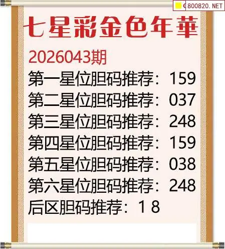 首页〉 七星彩图谜 走势图 七星彩预测七星彩图谜七星彩杀号七星彩技巧天齐图库走势图工具试机号 七星彩2026043期金色年华胆码推荐图迷 发布时间:2026-04-17 21:09 走势图:七星彩基本走势图七星彩期尾走势图 推荐:宝彩APP 免费方案 智能荐号 热点导航 公告: 天齐新版APP<中大多>上线,点击领鲜 最新文章 中大多 七星彩第2026043徐文选3D独胆已连准 七星彩第2026043卜算子奇偶分析 2026年042期龟丞相七星彩三码预测图豆豆先生2026042期七星彩三胆推荐图2026年老酒鬼042期七星彩胆码推测图百万雄师26年042期七星彩杀号图谜七星彩2026042期燕赤霞不定位杀码图毒霸26年042期七星彩杀号图谜 更多七星彩图谜 > 福彩3D 双色球 大乐透 排列三 更多> 3D胆码 3D预测 3D字谜 3D图谜 解太湖 3D条件 3D杀码 P3预测 P3图谜 P3字谜 P3条件 P3胆码 P3杀码 热点导航 天齐图库 走势图 工具图表 试机号 宝彩专家 智能荐号 菜单导航 关闭 福彩3D 3D专家 3D胆码 3D预测 3D字谜 3D图谜 解太湖 3D条件 3D杀码 3D技巧 3D走势图 体彩P3/P5 P3专家 P3预测 P3图谜 P3字谜 P3条件 P3胆码 P3杀码 P5预测 P3走势图 双色球 双色球专家 双色球预测 双色球杀号 双色球字图 双色球胆码 双色球走势 双色球技巧 大乐透 大乐透专家 大乐透预测 大乐透杀号 大乐透胆码 大乐透技巧 大乐透走势 天齐图库 七星彩 七星彩专家 七星彩预测 七星彩图谜 七星彩杀号 七星彩技巧 七星彩走势 天齐走势 七乐彩 七乐彩专家 七乐彩预测 七乐彩杀号 七乐彩技巧 七乐彩走势 热点导航 彩宝网 宝彩网 宝彩网 开奖公告 宝彩专家 牛票票