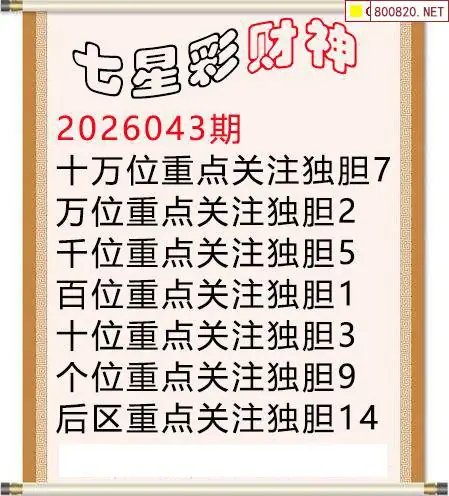 首页〉 七星彩图谜 走势图 七星彩预测七星彩图谜七星彩杀号七星彩技巧天齐图库走势图工具试机号 七星彩26043期诸葛财神独胆分析图迷 发布时间:2026-04-17 21:09 走势图:七星彩基本走势图七星彩期尾走势图 推荐:宝彩APP 免费方案 智能荐号 热点导航 公告: 天齐新版APP<中大多>上线,点击领鲜 最新文章 中大多 七星彩第2026043今期6+1高手 七星彩第2026043全部精准一注已公开 2026年042期龟丞相七星彩三码预测图豆豆先生2026042期七星彩三胆推荐图2026年老酒鬼042期七星彩胆码推测图百万雄师26年042期七星彩杀号图谜七星彩2026042期燕赤霞不定位杀码图毒霸26年042期七星彩杀号图谜 更多七星彩图谜 > 福彩3D 双色球 大乐透 排列三 更多> 3D胆码 3D预测 3D字谜 3D图谜 解太湖 3D条件 3D杀码 P3预测 P3图谜 P3字谜 P3条件 P3胆码 P3杀码 热点导航 天齐图库 走势图 工具图表 试机号 宝彩专家 智能荐号 菜单导航 关闭 福彩3D 3D专家 3D胆码 3D预测 3D字谜 3D图谜 解太湖 3D条件 3D杀码 3D技巧 3D走势图 体彩P3/P5 P3专家 P3预测 P3图谜 P3字谜 P3条件 P3胆码 P3杀码 P5预测 P3走势图 双色球 双色球专家 双色球预测 双色球杀号 双色球字图 双色球胆码 双色球走势 双色球技巧 大乐透 大乐透专家 大乐透预测 大乐透杀号 大乐透胆码 大乐透技巧 大乐透走势 天齐图库 七星彩 七星彩专家 七星彩预测 七星彩图谜 七星彩杀号 七星彩技巧 七星彩走势 天齐走势 七乐彩 七乐彩专家 七乐彩预测 七乐彩杀号 七乐彩技巧 七乐彩走势 热点导航 彩宝网 宝彩网 宝彩网 开奖公告 宝彩专家 牛票票