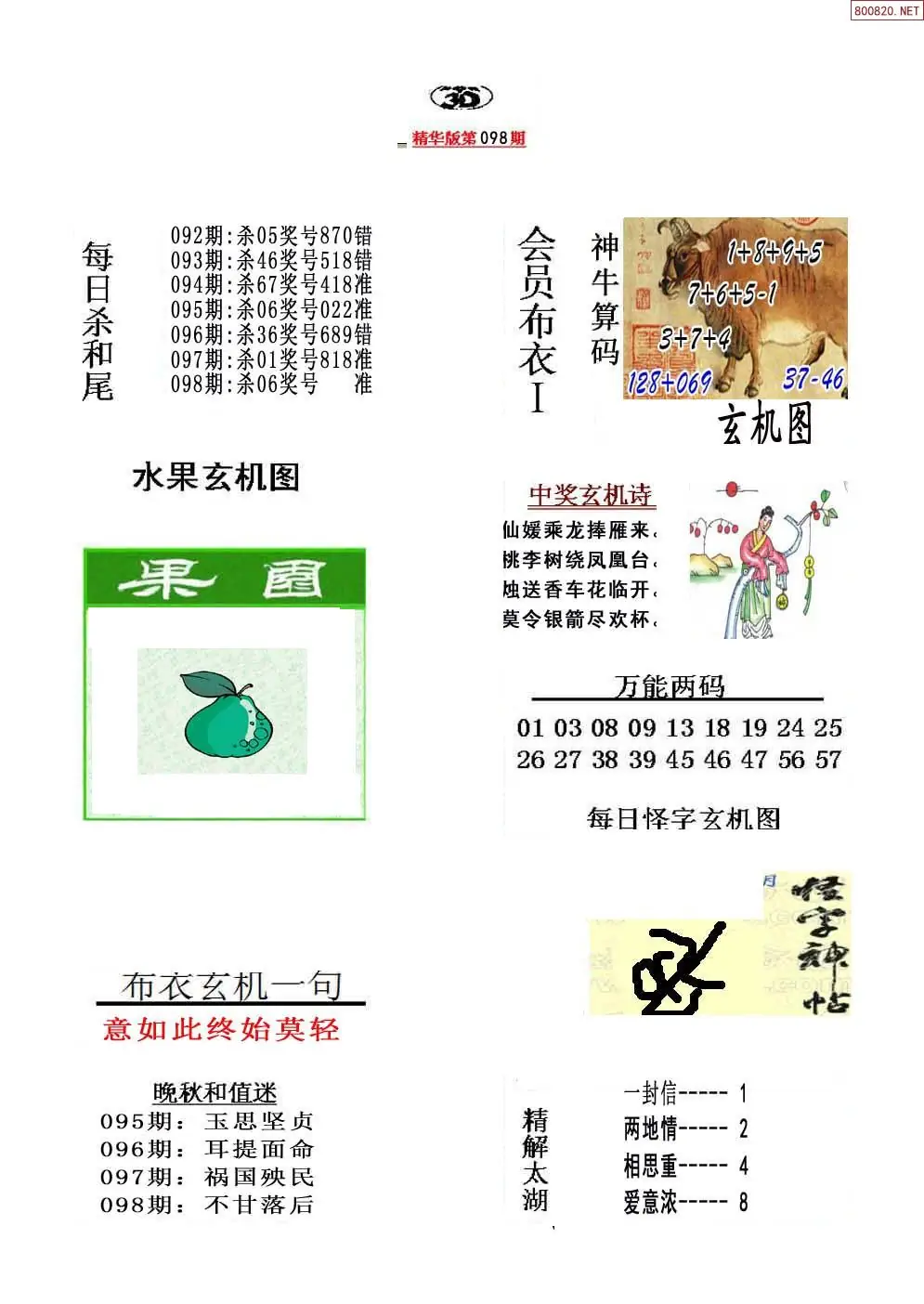 首页〉 3D图谜 走势图 3D胆码3D预测3D图谜3D字谜解太湖3D技巧3D条件3D杀码天齐图库走势图工具试机号 2026年098期精华布衣3D全图 专题:布衣3D全图 发布时间:2026-04-18 09:16 开奖:3D开奖结果3D近10期试机号 推荐:宝彩APP 免费方案 智能荐号 热点导航 公告: 天齐新版APP<中大多>上线,点击领鲜 最新文章 中大多 3D第2026098于海滨3D直选免费领 3D第2026098大兵3D免费独胆 26年098期解太湖3d字图迷汇总彩报2026年098期3D图谜汇总(九)2026年098期3D图谜汇总(八)2026年098期3D图谜汇总(七)2026年098期3d图迷汇总(六)2026年098期3d图谜汇总(五) 更多3D图谜 > 福彩3D 双色球 大乐透 排列三 更多> 3D胆码 3D预测 3D字谜 3D图谜 解太湖 3D条件 3D杀码 P3预测 P3图谜 P3字谜 P3条件 P3胆码 P3杀码 热点导航 天齐图库 走势图 工具图表 试机号 宝彩专家 智能荐号 菜单导航 关闭 福彩3D 3D专家 3D胆码 3D预测 3D字谜 3D图谜 解太湖 3D条件 3D杀码 3D技巧 3D走势图 体彩P3/P5 P3专家 P3预测 P3图谜 P3字谜 P3条件 P3胆码 P3杀码 P5预测 P3走势图 双色球 双色球专家 双色球预测 双色球杀号 双色球字图 双色球胆码 双色球走势 双色球技巧 大乐透 大乐透专家 大乐透预测 大乐透杀号 大乐透胆码 大乐透技巧 大乐透走势 天齐图库 七星彩 七星彩专家 七星彩预测 七星彩图谜 七星彩杀号 七星彩技巧 七星彩走势 天齐走势 七乐彩 七乐彩专家 七乐彩预测 七乐彩杀号 七乐彩技巧 七乐彩走势 热点导航 彩宝网 宝彩网 宝彩网 开奖公告 宝彩专家 牛票票
