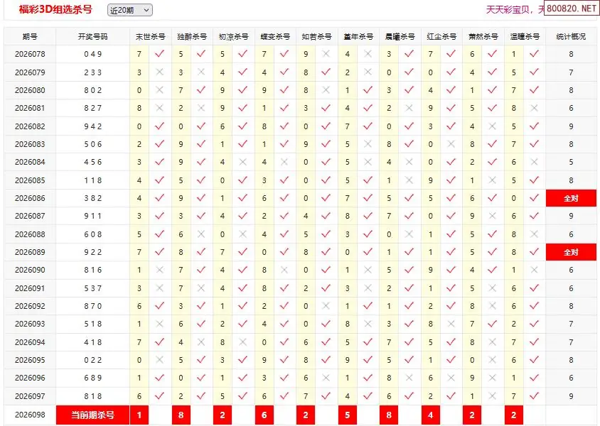 首页〉 3D杀码 走势图 3D胆码3D预测3D图谜3D字谜解太湖3D技巧3D条件3D杀码天齐图库走势图工具试机号 26098期彩宝贝福彩3D组选杀号 专题:3D杀码十专家 发布时间:2026-04-18 10:38 开奖:3D开奖结果3D近10期试机号 推荐:宝彩APP 免费方案 智能荐号 热点导航 公告: 天齐新版APP<中大多>上线,点击领鲜 最新文章 中大多 3D第2026098徐文轩3D独胆 3D第2026098独家推荐料一码 26年098期[浮梦一生]3d杀一胆 97错2726年098期[醉相思]3d杀一码 97错2226年098期[忆往昔]3d本期杀号 97错3226年098期[顾棋]本期3d杀号 97错2826年098期[孤影梵然]杀双胆 97错4626年098期[流星风雨]3d杀一码 97错40 更多3D杀码 > 福彩3D 双色球 大乐透 排列三 更多> 3D胆码 3D预测 3D字谜 3D图谜 解太湖 3D条件 3D杀码 P3预测 P3图谜 P3字谜 P3条件 P3胆码 P3杀码 热点导航 天齐图库 走势图 工具图表 试机号 宝彩专家 智能荐号 菜单导航 关闭 福彩3D 3D专家 3D胆码 3D预测 3D字谜 3D图谜 解太湖 3D条件 3D杀码 3D技巧 3D走势图 体彩P3/P5 P3专家 P3预测 P3图谜 P3字谜 P3条件 P3胆码 P3杀码 P5预测 P3走势图 双色球 双色球专家 双色球预测 双色球杀号 双色球字图 双色球胆码 双色球走势 双色球技巧 大乐透 大乐透专家 大乐透预测 大乐透杀号 大乐透胆码 大乐透技巧 大乐透走势 天齐图库 七星彩 七星彩专家 七星彩预测 七星彩图谜 七星彩杀号 七星彩技巧 七星彩走势 天齐走势 七乐彩 七乐彩专家 七乐彩预测 七乐彩杀号 七乐彩技巧 七乐彩走势 热点导航 彩宝网 宝彩网 宝彩网 开奖公告 宝彩专家 牛票票