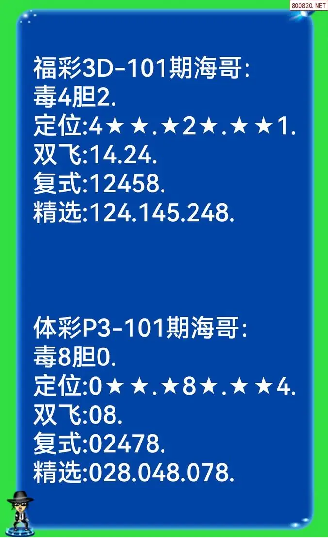 首页〉 3D胆码 走势图 3D胆码3D预测3D图谜3D字谜解太湖3D技巧3D条件3D杀码天齐图库走势图工具试机号 [海哥]第101期3d本期双胆 专题:海哥三胆 发布时间:2026-04-20 21:59 开奖:3D开奖结果3D近10期试机号 推荐:宝彩APP 免费方案 智能荐号 热点导航 公告: 天齐新版APP<中大多>上线,点击领鲜 最新文章 中大多 3D第2026101卜算子奇偶分析 3D第2026101徐文选3D直选已更新 [陈华]第2026101期3D本期赌胆[海哥]第101期3d本期双胆26年101期[任新立]万能五码分享 100错626年101期[史星驰]3d四码复式 100错2226年101期[滕元凯]精选3d三胆 100错2926年101期[樱雨]今日3d毒胆 100错69 更多3D胆码 > 福彩3D 双色球 大乐透 排列三 更多> 3D胆码 3D预测 3D字谜 3D图谜 解太湖 3D条件 3D杀码 P3预测 P3图谜 P3字谜 P3条件 P3胆码 P3杀码 热点导航 天齐图库 走势图 工具图表 试机号 宝彩专家 智能荐号 菜单导航 关闭 福彩3D 3D专家 3D胆码 3D预测 3D字谜 3D图谜 解太湖 3D条件 3D杀码 3D技巧 3D走势图 体彩P3/P5 P3专家 P3预测 P3图谜 P3字谜 P3条件 P3胆码 P3杀码 P5预测 P3走势图 双色球 双色球专家 双色球预测 双色球杀号 双色球字图 双色球胆码 双色球走势 双色球技巧 大乐透 大乐透专家 大乐透预测 大乐透杀号 大乐透胆码 大乐透技巧 大乐透走势 天齐图库 七星彩 七星彩专家 七星彩预测 七星彩图谜 七星彩杀号 七星彩技巧 七星彩走势 天齐走势 七乐彩 七乐彩专家 七乐彩预测 七乐彩杀号 七乐彩技巧 七乐彩走势 热点导航 彩宝网 宝彩网 宝彩网 开奖公告 宝彩专家 牛票票