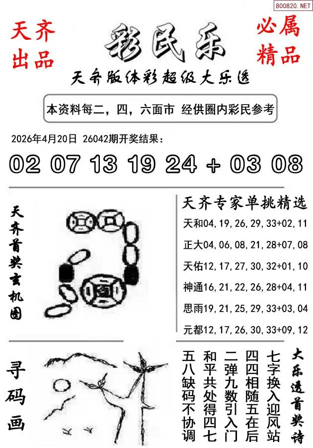 首页〉 大乐透预测 走势图 大乐透预测大乐透杀号大乐透胆码大乐透技巧天齐图库走势图工具试机号 26年043期天齐版大乐透彩民乐图谜 专题:大乐透彩民乐 发布时间:2026-04-20 22:00 走势图:大乐透综合走势图大乐透期尾走势图 推荐:宝彩APP 免费方案 智能荐号 热点导航 公告: 天齐新版APP<中大多>上线,点击领鲜 最新文章 中大多 大乐透第2026043一码毒蓝连中8期 大乐透第2026043于海滨3D独胆 大乐透2026年043期名家精选号码推荐总汇历史上的今天大乐透4月22日开奖号码汇总26年043期天齐版大乐透彩民乐图谜043期体彩大乐透历史同期对比图表+近期走势图分析大乐透历史上的今天043期大乐透26042期开奖结果 02 07 13 19 24 + 03 08 更多大乐透预测 > 福彩3D 双色球 大乐透 排列三 更多> 3D胆码 3D预测 3D字谜 3D图谜 解太湖 3D条件 3D杀码 P3预测 P3图谜 P3字谜 P3条件 P3胆码 P3杀码 热点导航 天齐图库 走势图 工具图表 试机号 宝彩专家 智能荐号 菜单导航 关闭 福彩3D 3D专家 3D胆码 3D预测 3D字谜 3D图谜 解太湖 3D条件 3D杀码 3D技巧 3D走势图 体彩P3/P5 P3专家 P3预测 P3图谜 P3字谜 P3条件 P3胆码 P3杀码 P5预测 P3走势图 双色球 双色球专家 双色球预测 双色球杀号 双色球字图 双色球胆码 双色球走势 双色球技巧 大乐透 大乐透专家 大乐透预测 大乐透杀号 大乐透胆码 大乐透技巧 大乐透走势 天齐图库 七星彩 七星彩专家 七星彩预测 七星彩图谜 七星彩杀号 七星彩技巧 七星彩走势 天齐走势 七乐彩 七乐彩专家 七乐彩预测 七乐彩杀号 七乐彩技巧 七乐彩走势 热点导航 彩宝网 宝彩网 宝彩网 开奖公告 宝彩专家 牛票票