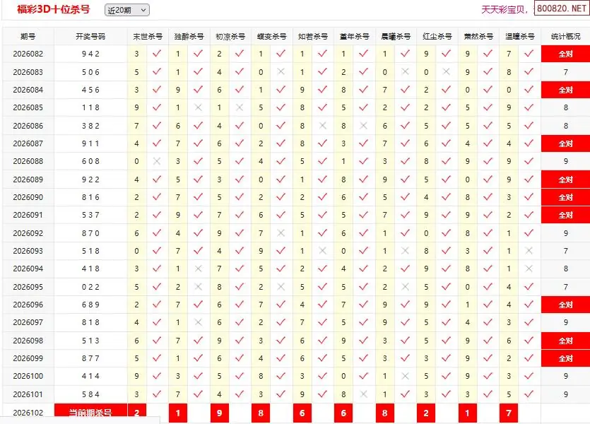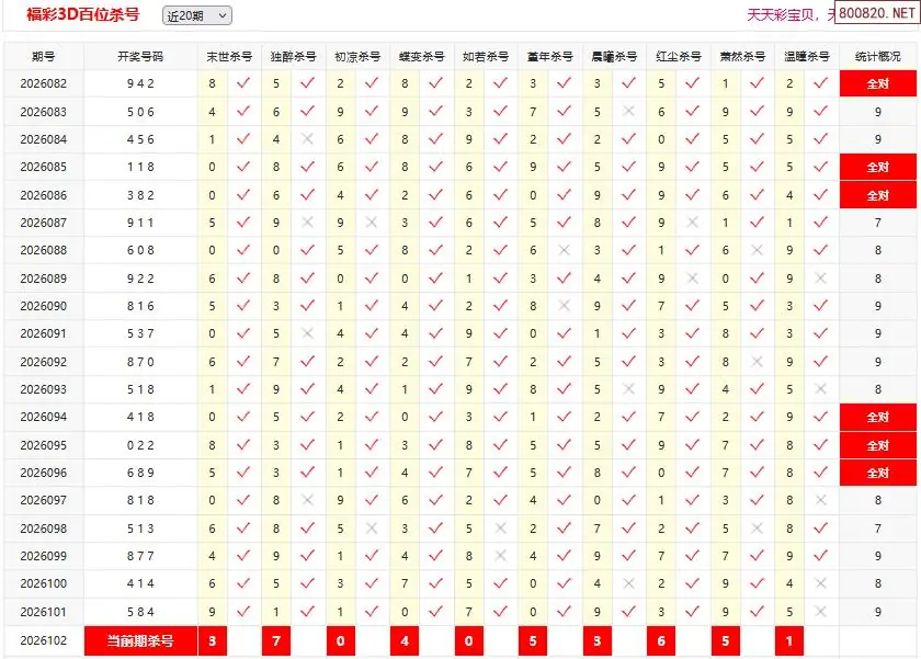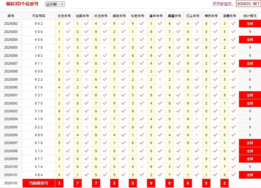 首页〉 3D杀码 走势图 3D胆码3D预测3D图谜3D字谜解太湖3D技巧3D条件3D杀码天齐图库走势图工具试机号 26102期彩宝贝福彩3D百十个位杀号 专题:3D杀码十专家 发布时间:2026-04-22 10:19 开奖:3D开奖结果3D近10期试机号 推荐:宝彩APP 免费方案 智能荐号 热点导航 公告: 天齐新版APP<中大多>上线,点击领鲜 最新文章 中大多 3D第2026102徐文选3D独胆已连准 3D第2026102徐文选3D独胆已连准 26年102期[浮梦一生]3d杀一胆 101错2726年102期[醉相思]3d杀一码 101错2226年102期[忆往昔]3d本期杀号 101错3326年102期[顾棋]本期3d杀号 101错3126年102期[孤影梵然]杀双胆 101错4826年102期[流星风雨]3d杀一码 101错40 更多3D杀码 > 福彩3D 双色球 大乐透 排列三 更多> 3D胆码 3D预测 3D字谜 3D图谜 解太湖 3D条件 3D杀码 P3预测 P3图谜 P3字谜 P3条件 P3胆码 P3杀码 热点导航 天齐图库 走势图 工具图表 试机号 宝彩专家 智能荐号 菜单导航 关闭 福彩3D 3D专家 3D胆码 3D预测 3D字谜 3D图谜 解太湖 3D条件 3D杀码 3D技巧 3D走势图 体彩P3/P5 P3专家 P3预测 P3图谜 P3字谜 P3条件 P3胆码 P3杀码 P5预测 P3走势图 双色球 双色球专家 双色球预测 双色球杀号 双色球字图 双色球胆码 双色球走势 双色球技巧 大乐透 大乐透专家 大乐透预测 大乐透杀号 大乐透胆码 大乐透技巧 大乐透走势 天齐图库 七星彩 七星彩专家 七星彩预测 七星彩图谜 七星彩杀号 七星彩技巧 七星彩走势 天齐走势 七乐彩 七乐彩专家 七乐彩预测 七乐彩杀号 七乐彩技巧 七乐彩走势 热点导航 彩宝网 宝彩网 宝彩网 开奖公告 宝彩专家 牛票票