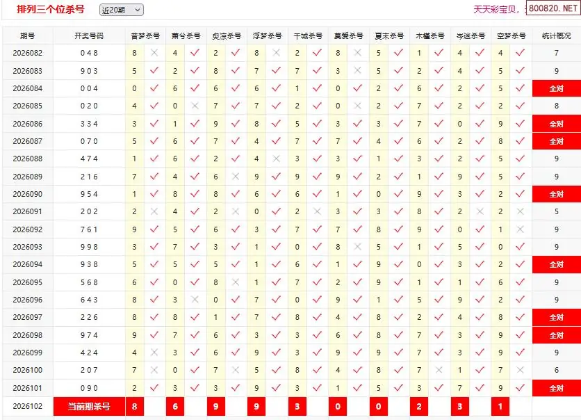 首页〉 P3杀码 走势图 P3预测P3图谜P3字谜P3技巧P3条件P3胆码P3杀码P5预测天齐图库走势图工具试机号 体彩p326102期彩宝贝十大专家排三定位杀码 专题:p3十大专家杀号 发布时间:2026-04-22 10:19 工具:P3过滤缩水P3试机号走势图 推荐:宝彩APP 免费方案 智能荐号 热点导航 公告: 天齐新版APP<中大多>上线,点击领鲜 最新文章 中大多 排列三第2026102于海滨本期直选 排列三第2026102独家推荐料一码 [倪匡]体彩P3本期杀三码26年102期 101错60[许仲琳]体彩p3杀双胆26年102期 101错44[孟繁华]体彩P3绝杀独胆26年102期 101错23[曹文轩]排列三本期杀码26年102期 101错27[冰洁雪儿]体彩p3杀三胆26年102期 101错73[雪色无香]体彩P3杀三码推荐26年102期 101错59 更多P3杀码 > 福彩3D 双色球 大乐透 排列三 更多> 3D胆码 3D预测 3D字谜 3D图谜 解太湖 3D条件 3D杀码 P3预测 P3图谜 P3字谜 P3条件 P3胆码 P3杀码 热点导航 天齐图库 走势图 工具图表 试机号 宝彩专家 智能荐号 菜单导航 关闭 福彩3D 3D专家 3D胆码 3D预测 3D字谜 3D图谜 解太湖 3D条件 3D杀码 3D技巧 3D走势图 体彩P3/P5 P3专家 P3预测 P3图谜 P3字谜 P3条件 P3胆码 P3杀码 P5预测 P3走势图 双色球 双色球专家 双色球预测 双色球杀号 双色球字图 双色球胆码 双色球走势 双色球技巧 大乐透 大乐透专家 大乐透预测 大乐透杀号 大乐透胆码 大乐透技巧 大乐透走势 天齐图库 七星彩 七星彩专家 七星彩预测 七星彩图谜 七星彩杀号 七星彩技巧 七星彩走势 天齐走势 七乐彩 七乐彩专家 七乐彩预测 七乐彩杀号 七乐彩技巧 七乐彩走势 热点导航 彩宝网 宝彩网 宝彩网 开奖公告 宝彩专家 牛票票