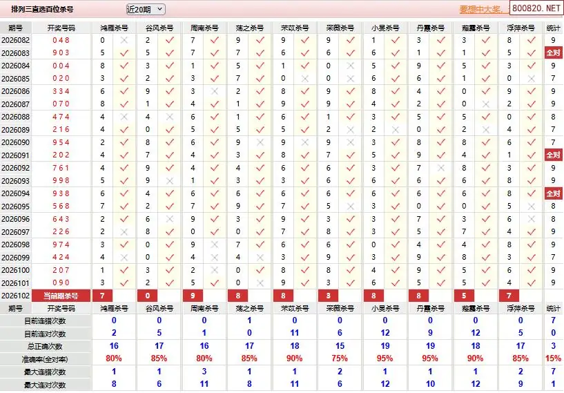 首页〉 P3杀码 走势图 P3预测P3图谜P3字谜P3技巧P3条件P3胆码P3杀码P5预测天齐图库走势图工具试机号 体彩P326年102期彩经彩票十大专家杀号 专题:p3十大专家杀号 发布时间:2026-04-22 10:20 工具:P3过滤缩水P3试机号走势图 推荐:宝彩APP 免费方案 智能荐号 热点导航 公告: 天齐新版APP<中大多>上线,点击领鲜 最新文章 中大多 排列三第2026102全部定位10中8 排列三第2026102真帝王宝图预测3D准 [倪匡]体彩P3本期杀三码26年102期 101错60[许仲琳]体彩p3杀双胆26年102期 101错44[孟繁华]体彩P3绝杀独胆26年102期 101错23[曹文轩]排列三本期杀码26年102期 101错27[冰洁雪儿]体彩p3杀三胆26年102期 101错73[雪色无香]体彩P3杀三码推荐26年102期 101错59 更多P3杀码 > 福彩3D 双色球 大乐透 排列三 更多> 3D胆码 3D预测 3D字谜 3D图谜 解太湖 3D条件 3D杀码 P3预测 P3图谜 P3字谜 P3条件 P3胆码 P3杀码 热点导航 天齐图库 走势图 工具图表 试机号 宝彩专家 智能荐号 菜单导航 关闭 福彩3D 3D专家 3D胆码 3D预测 3D字谜 3D图谜 解太湖 3D条件 3D杀码 3D技巧 3D走势图 体彩P3/P5 P3专家 P3预测 P3图谜 P3字谜 P3条件 P3胆码 P3杀码 P5预测 P3走势图 双色球 双色球专家 双色球预测 双色球杀号 双色球字图 双色球胆码 双色球走势 双色球技巧 大乐透 大乐透专家 大乐透预测 大乐透杀号 大乐透胆码 大乐透技巧 大乐透走势 天齐图库 七星彩 七星彩专家 七星彩预测 七星彩图谜 七星彩杀号 七星彩技巧 七星彩走势 天齐走势 七乐彩 七乐彩专家 七乐彩预测 七乐彩杀号 七乐彩技巧 七乐彩走势 热点导航 彩宝网 宝彩网 宝彩网 开奖公告 宝彩专家 牛票票