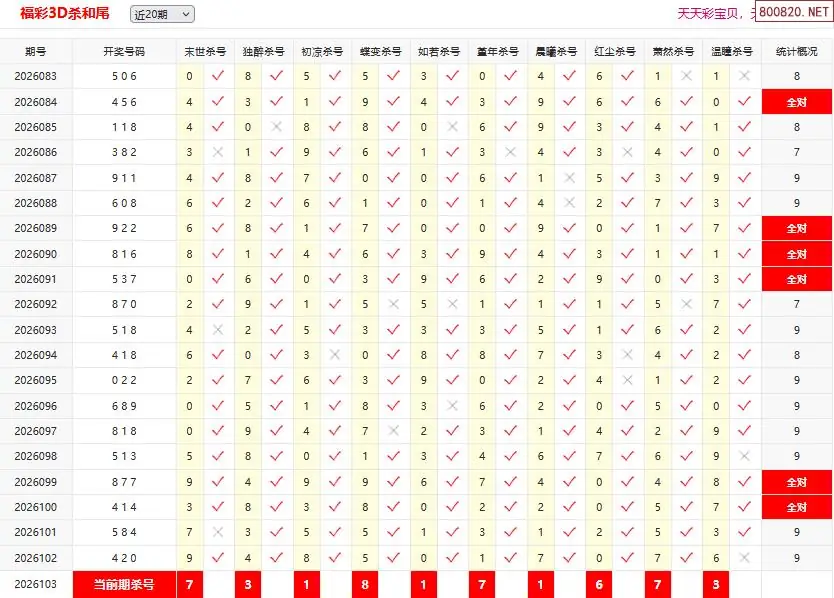 首页〉 3D条件 走势图 3D胆码3D预测3D图谜3D字谜解太湖3D技巧3D条件3D杀码天齐图库走势图工具试机号 26103期彩宝贝福彩3D杀和尾 专题:3d和尾十专家杀尾汇总 发布时间:2026-04-23 11:27 开奖:3D开奖结果3D近10期试机号 推荐:宝彩APP 免费方案 智能荐号 热点导航 公告: 天齐新版APP<中大多>上线,点击领鲜 最新文章 中大多 3D第2026103丹东鬼六预测准 3D第2026103老北京3D独胆 26103期彩宝贝福彩3D杀跨度26103期彩宝贝福彩3D杀和尾26年103期福彩3d彩经十大专家杀跨度26年103期福彩3d彩经十大专家杀和尾福彩3d26年103期澳客专家杀跨度福彩3d26年103期澳客专家杀和尾 更多3D条件 > 福彩3D 双色球 大乐透 排列三 更多> 3D胆码 3D预测 3D字谜 3D图谜 解太湖 3D条件 3D杀码 P3预测 P3图谜 P3字谜 P3条件 P3胆码 P3杀码 热点导航 天齐图库 走势图 工具图表 试机号 宝彩专家 智能荐号 菜单导航 关闭 福彩3D 3D专家 3D胆码 3D预测 3D字谜 3D图谜 解太湖 3D条件 3D杀码 3D技巧 3D走势图 体彩P3/P5 P3专家 P3预测 P3图谜 P3字谜 P3条件 P3胆码 P3杀码 P5预测 P3走势图 双色球 双色球专家 双色球预测 双色球杀号 双色球字图 双色球胆码 双色球走势 双色球技巧 大乐透 大乐透专家 大乐透预测 大乐透杀号 大乐透胆码 大乐透技巧 大乐透走势 天齐图库 七星彩 七星彩专家 七星彩预测 七星彩图谜 七星彩杀号 七星彩技巧 七星彩走势 天齐走势 七乐彩 七乐彩专家 七乐彩预测 七乐彩杀号 七乐彩技巧 七乐彩走势 热点导航 彩宝网 宝彩网 宝彩网 开奖公告 宝彩专家 牛票票