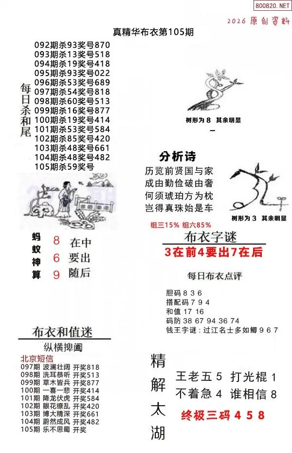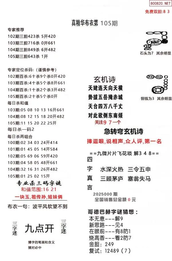 首页〉 3D图谜 走势图 3D胆码3D预测3D图谜3D字谜解太湖3D技巧3D条件3D杀码天齐图库走势图工具试机号 26105期精华布衣123456+好心+早版12 专题:精布衣 发布时间:2026-04-24 19:57 开奖:3D开奖结果3D近10期试机号 推荐:宝彩APP 免费方案 智能荐号 热点导航 公告: 天齐新版APP<中大多>上线,点击领鲜 最新文章 中大多 3D第2026108徐文选3D独胆已连准 3D第2026108免费独胆连中五码 2026年107期3D图谜汇总(九)2026年107期3D图谜汇总(八)2026年107期3D图谜汇总(七)2026年107期3d图迷汇总(六)2026年107期3d图谜汇总(五)2026年107期3D图迷汇总(四) 更多3D图谜 > 福彩3D 双色球 大乐透 排列三 更多> 3D胆码 3D预测 3D字谜 3D图谜 解太湖 3D条件 3D杀码 P3预测 P3图谜 P3字谜 P3条件 P3胆码 P3杀码 热点导航 天齐图库 走势图 工具图表 试机号 宝彩专家 智能荐号 菜单导航 关闭 福彩3D 3D专家 3D胆码 3D预测 3D字谜 3D图谜 解太湖 3D条件 3D杀码 3D技巧 3D走势图 体彩P3/P5 P3专家 P3预测 P3图谜 P3字谜 P3条件 P3胆码 P3杀码 P5预测 P3走势图 双色球 双色球专家 双色球预测 双色球杀号 双色球字图 双色球胆码 双色球走势 双色球技巧 大乐透 大乐透专家 大乐透预测 大乐透杀号 大乐透胆码 大乐透技巧 大乐透走势 天齐图库 七星彩 七星彩专家 七星彩预测 七星彩图谜 七星彩杀号 七星彩技巧 七星彩走势 天齐走势 七乐彩 七乐彩专家 七乐彩预测 七乐彩杀号 七乐彩技巧 七乐彩走势 热点导航 彩宝网 宝彩网 宝彩网 开奖公告 宝彩专家 牛票票