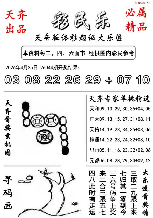 首页〉 大乐透预测 走势图 大乐透预测大乐透杀号大乐透胆码大乐透技巧天齐图库走势图工具试机号 26年045期天齐版大乐透彩民乐图谜 专题:大乐透彩民乐 发布时间:2026-04-25 21:41 走势图:大乐透综合走势图大乐透期尾走势图 推荐:宝彩APP 免费方案 智能荐号 热点导航 公告: 天齐新版APP<中大多>上线,点击领鲜 最新文章 中大多 大乐透第2026045独胆连中免费试料 大乐透第2026045今日一注100%中奖 历史上的今天大乐透4月27日开奖号码汇总045期体彩大乐透历史同期对比图表+近期走势图分析大乐透历史上的今天045期大乐透第26044期[智者谋奖]推荐今日前后胆码杀码大乐透第26044期[选胆高手]预测后区热号推荐大乐透第26044期[古蓝天者]高手预测定胆杀号 更多大乐透预测 > 福彩3D 双色球 大乐透 排列三 更多> 3D胆码 3D预测 3D字谜 3D图谜 解太湖 3D条件 3D杀码 P3预测 P3图谜 P3字谜 P3条件 P3胆码 P3杀码 热点导航 天齐图库 走势图 工具图表 试机号 宝彩专家 智能荐号 菜单导航 关闭 福彩3D 3D专家 3D胆码 3D预测 3D字谜 3D图谜 解太湖 3D条件 3D杀码 3D技巧 3D走势图 体彩P3/P5 P3专家 P3预测 P3图谜 P3字谜 P3条件 P3胆码 P3杀码 P5预测 P3走势图 双色球 双色球专家 双色球预测 双色球杀号 双色球字图 双色球胆码 双色球走势 双色球技巧 大乐透 大乐透专家 大乐透预测 大乐透杀号 大乐透胆码 大乐透技巧 大乐透走势 天齐图库 七星彩 七星彩专家 七星彩预测 七星彩图谜 七星彩杀号 七星彩技巧 七星彩走势 天齐走势 七乐彩 七乐彩专家 七乐彩预测 七乐彩杀号 七乐彩技巧 七乐彩走势 热点导航 彩宝网 宝彩网 宝彩网 开奖公告 宝彩专家 牛票票