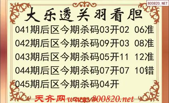 首页〉 大乐透杀号 走势图 大乐透预测大乐透杀号大乐透胆码大乐透技巧天齐图库走势图工具试机号 关羽26年045期大乐透后区杀号图谜 专题:后区杀号 发布时间:2026-04-26 08:14 走势图:大乐透综合走势图大乐透期尾走势图 推荐:宝彩APP 免费方案 智能荐号 热点导航 公告: 天齐新版APP<中大多>上线,点击领鲜 最新文章 中大多 大乐透第20260465码定位直选(限10名) 大乐透第2026046老北京3D独胆 大乐透26年045期彩宝贝专家后区杀号大乐透26年045期彩宝贝专家前区杀号大乐透26年045期彩经十大专家后区杀号汇总大乐透26年045期彩经十大专家前区杀号汇总[摸金天师]2026045期大乐透前区杀号定胆2026045期大乐透[汉正街]前区杀号二个 更多大乐透杀号 > 福彩3D 双色球 大乐透 排列三 更多> 3D胆码 3D预测 3D字谜 3D图谜 解太湖 3D条件 3D杀码 P3预测 P3图谜 P3字谜 P3条件 P3胆码 P3杀码 热点导航 天齐图库 走势图 工具图表 试机号 宝彩专家 智能荐号 菜单导航 关闭 福彩3D 3D专家 3D胆码 3D预测 3D字谜 3D图谜 解太湖 3D条件 3D杀码 3D技巧 3D走势图 体彩P3/P5 P3专家 P3预测 P3图谜 P3字谜 P3条件 P3胆码 P3杀码 P5预测 P3走势图 双色球 双色球专家 双色球预测 双色球杀号 双色球字图 双色球胆码 双色球走势 双色球技巧 大乐透 大乐透专家 大乐透预测 大乐透杀号 大乐透胆码 大乐透技巧 大乐透走势 天齐图库 七星彩 七星彩专家 七星彩预测 七星彩图谜 七星彩杀号 七星彩技巧 七星彩走势 天齐走势 七乐彩 七乐彩专家 七乐彩预测 七乐彩杀号 七乐彩技巧 七乐彩走势 热点导航 彩宝网 宝彩网 宝彩网 开奖公告 宝彩专家 牛票票