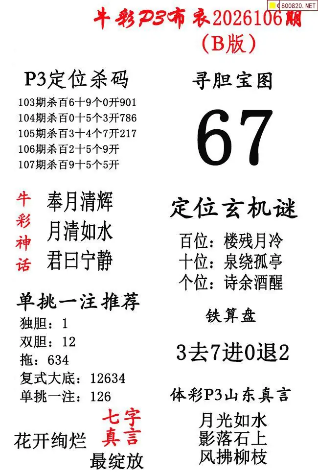 首页〉 P3图谜 走势图 P3预测P3图谜P3字谜P3技巧P3条件P3胆码P3杀码P5预测天齐图库走势图工具试机号 牛彩体彩P3布衣2026年107期AB版图谜(精华版) 发布时间:2026-04-26 22:23 工具:P3过滤缩水P3试机号走势图 推荐:宝彩APP 免费方案 智能荐号 热点导航 公告: 天齐新版APP<中大多>上线,点击领鲜 最新文章 中大多 排列三第2026107徐文轩分析独胆定蓝 排列三第2026107于海滨3D杀码10中8 蜂巢图26107期迷宫寻胆+天机玄机P3图谜26107期彩吧p3全图p3九宫图谜26107期天齐P3图谜总汇2026107期p3北盟天机图+p3仙机图谜26107期丹东p3图汇总分析金胆图谜2026107期乾坤一句p3定三码图谜 更多P3图谜 > 福彩3D 双色球 大乐透 排列三 更多> 3D胆码 3D预测 3D字谜 3D图谜 解太湖 3D条件 3D杀码 P3预测 P3图谜 P3字谜 P3条件 P3胆码 P3杀码 热点导航 天齐图库 走势图 工具图表 试机号 宝彩专家 智能荐号 菜单导航 关闭 福彩3D 3D专家 3D胆码 3D预测 3D字谜 3D图谜 解太湖 3D条件 3D杀码 3D技巧 3D走势图 体彩P3/P5 P3专家 P3预测 P3图谜 P3字谜 P3条件 P3胆码 P3杀码 P5预测 P3走势图 双色球 双色球专家 双色球预测 双色球杀号 双色球字图 双色球胆码 双色球走势 双色球技巧 大乐透 大乐透专家 大乐透预测 大乐透杀号 大乐透胆码 大乐透技巧 大乐透走势 天齐图库 七星彩 七星彩专家 七星彩预测 七星彩图谜 七星彩杀号 七星彩技巧 七星彩走势 天齐走势 七乐彩 七乐彩专家 七乐彩预测 七乐彩杀号 七乐彩技巧 七乐彩走势 热点导航 彩宝网 宝彩网 宝彩网 开奖公告 宝彩专家 牛票票