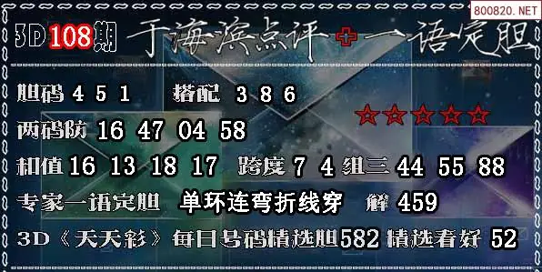 3D 《天天彩》每日号码精选胆582 精选看好52