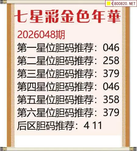 首页〉 七星彩图谜 走势图 七星彩预测七星彩图谜七星彩杀号七星彩技巧天齐图库走势图工具试机号 七星彩2026048期金色年华胆码推荐图迷 发布时间:2026-04-28 22:57 走势图:七星彩基本走势图七星彩期尾走势图 推荐:宝彩APP 免费方案 智能荐号 热点导航 公告: 天齐新版APP<中大多>上线,点击领鲜 最新文章 中大多 七星彩第2026048徐文选3D直选已更新 七星彩第2026048精准杀一码推荐 七星彩26048期繁华落尽胆组图迷七星彩26年第048期四季如春定位杀码图迷七星彩26年048期乱世佳人胆码图迷七星彩2026048期金色年华胆码推荐图迷七星彩26048期诸葛财神独胆分析图迷2026年047期龟丞相七星彩三码预测图 更多七星彩图谜 > 福彩3D 双色球 大乐透 排列三 更多> 3D胆码 3D预测 3D字谜 3D图谜 解太湖 3D条件 3D杀码 P3预测 P3图谜 P3字谜 P3条件 P3胆码 P3杀码 热点导航 天齐图库 走势图 工具图表 试机号 宝彩专家 智能荐号 菜单导航 关闭 福彩3D 3D专家 3D胆码 3D预测 3D字谜 3D图谜 解太湖 3D条件 3D杀码 3D技巧 3D走势图 体彩P3/P5 P3专家 P3预测 P3图谜 P3字谜 P3条件 P3胆码 P3杀码 P5预测 P3走势图 双色球 双色球专家 双色球预测 双色球杀号 双色球字图 双色球胆码 双色球走势 双色球技巧 大乐透 大乐透专家 大乐透预测 大乐透杀号 大乐透胆码 大乐透技巧 大乐透走势 天齐图库 七星彩 七星彩专家 七星彩预测 七星彩图谜 七星彩杀号 七星彩技巧 七星彩走势 天齐走势 七乐彩 七乐彩专家 七乐彩预测 七乐彩杀号 七乐彩技巧 七乐彩走势 热点导航 彩宝网 宝彩网 宝彩网 开奖公告 宝彩专家 牛票票