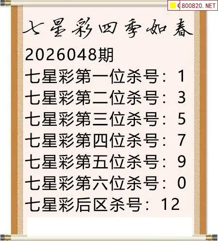 首页〉 七星彩图谜 走势图 七星彩预测七星彩图谜七星彩杀号七星彩技巧天齐图库走势图工具试机号 七星彩26年第048期四季如春定位杀码图迷 发布时间:2026-04-28 22:57 走势图:七星彩基本走势图七星彩期尾走势图 推荐:宝彩APP 免费方案 智能荐号 热点导航 公告: 天齐新版APP<中大多>上线,点击领鲜 最新文章 中大多 七星彩第2026048于海滨3D独胆 七星彩第2026048今晚免费独胆五码 2026年047期龟丞相七星彩三码预测图豆豆先生2026047期七星彩三胆推荐图2026年老酒鬼047期七星彩胆码推测图百万雄师26年047期七星彩杀号图谜七星彩2026047期燕赤霞不定位杀码图毒霸26年047期七星彩杀号图谜 更多七星彩图谜 > 福彩3D 双色球 大乐透 排列三 更多> 3D胆码 3D预测 3D字谜 3D图谜 解太湖 3D条件 3D杀码 P3预测 P3图谜 P3字谜 P3条件 P3胆码 P3杀码 热点导航 天齐图库 走势图 工具图表 试机号 宝彩专家 智能荐号 菜单导航 关闭 福彩3D 3D专家 3D胆码 3D预测 3D字谜 3D图谜 解太湖 3D条件 3D杀码 3D技巧 3D走势图 体彩P3/P5 P3专家 P3预测 P3图谜 P3字谜 P3条件 P3胆码 P3杀码 P5预测 P3走势图 双色球 双色球专家 双色球预测 双色球杀号 双色球字图 双色球胆码 双色球走势 双色球技巧 大乐透 大乐透专家 大乐透预测 大乐透杀号 大乐透胆码 大乐透技巧 大乐透走势 天齐图库 七星彩 七星彩专家 七星彩预测 七星彩图谜 七星彩杀号 七星彩技巧 七星彩走势 天齐走势 七乐彩 七乐彩专家 七乐彩预测 七乐彩杀号 七乐彩技巧 七乐彩走势 热点导航 彩宝网 宝彩网 宝彩网 开奖公告 宝彩专家 牛票票