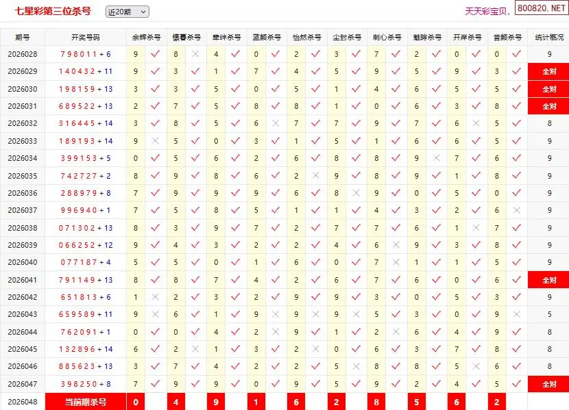 首页〉 七星彩杀号 走势图 七星彩预测七星彩图谜七星彩杀号七星彩技巧天齐图库走势图工具试机号 七星彩048期彩宝贝专家杀三位码 专题:第三位杀号 发布时间:2026-04-29 10:15 走势图:七星彩基本走势图七星彩期尾走势图 推荐:宝彩APP 免费方案 智能荐号 热点导航 公告: 天齐新版APP<中大多>上线,点击领鲜 最新文章 中大多 七星彩第2026048直选5码(限10名) 七星彩第2026048全部定位10中8 体彩七星彩048期彩经十大专家第一位杀号七星彩048期彩宝贝专家后区杀码七星彩048期彩宝贝专家杀六位码七星彩048期彩宝贝专家杀五位码七星彩048期彩宝贝专家杀四位码七星彩048期彩宝贝专家杀三位码 更多七星彩杀号 > 福彩3D 双色球 大乐透 排列三 更多> 3D胆码 3D预测 3D字谜 3D图谜 解太湖 3D条件 3D杀码 P3预测 P3图谜 P3字谜 P3条件 P3胆码 P3杀码 热点导航 天齐图库 走势图 工具图表 试机号 宝彩专家 智能荐号 菜单导航 关闭 福彩3D 3D专家 3D胆码 3D预测 3D字谜 3D图谜 解太湖 3D条件 3D杀码 3D技巧 3D走势图 体彩P3/P5 P3专家 P3预测 P3图谜 P3字谜 P3条件 P3胆码 P3杀码 P5预测 P3走势图 双色球 双色球专家 双色球预测 双色球杀号 双色球字图 双色球胆码 双色球走势 双色球技巧 大乐透 大乐透专家 大乐透预测 大乐透杀号 大乐透胆码 大乐透技巧 大乐透走势 天齐图库 七星彩 七星彩专家 七星彩预测 七星彩图谜 七星彩杀号 七星彩技巧 七星彩走势 天齐走势 七乐彩 七乐彩专家 七乐彩预测 七乐彩杀号 七乐彩技巧 七乐彩走势 热点导航 彩宝网 宝彩网 宝彩网 开奖公告 宝彩专家 牛票票
